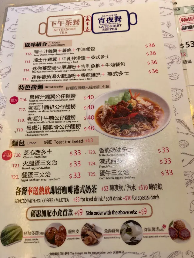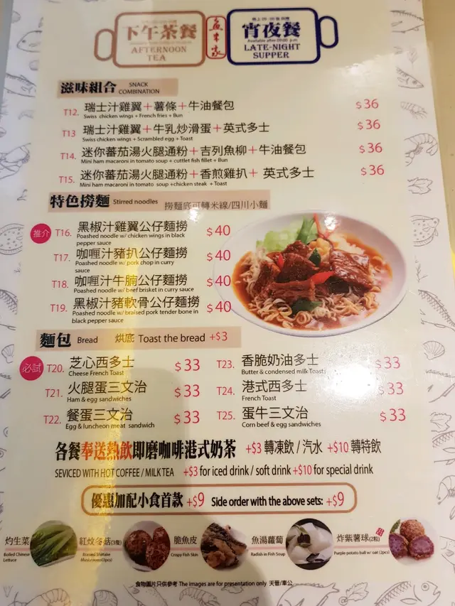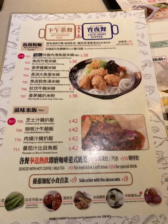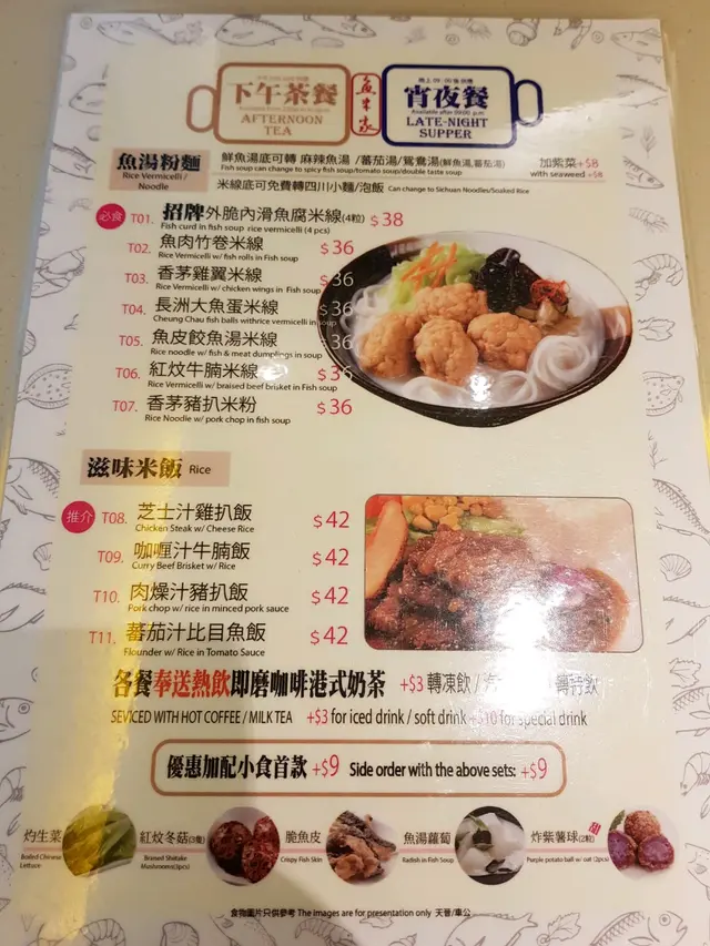 車公廟站旁邊,溱岸樓下嘅一間餐廳,室內環境舒服,座位寬敞,環境都唔錯。下午兩點到六點有下午茶餐,價錢由$33至到$40左右,有米線、飯、常餐、公仔麵撈、多士及三文治等。款式好多,適合鍾意食唔同嘢食嘅朋友。今次我哋叫咗長洲大魚旦湯米線餐, $36包飲品一杯,真抵喎。飲品叫咗熱鴛鴦,咖啡味都幾香,奶都幾滑,味道唔錯。魚蛋米線份量都幾多,米線幾爽口彈牙,湯底比較咸,魚蛋大粒,但只有兩粒,比我想像中少,可能我期望太高,不過味道都算唔錯。整體來講呢間嘅下午茶餐都幾抵食,夠晒經濟實惠, $40遊走,有一碗麵又有飲品,經濟唔好嘅情況之下,呢度都係一間好嘅選擇。查看更多