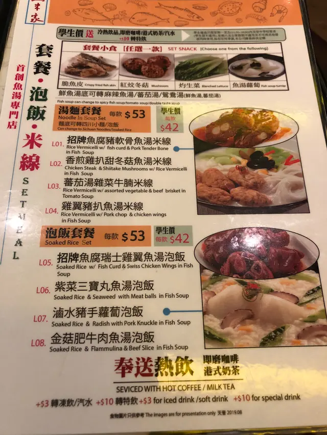 很近的鮮魚湯米線店🥰覺得好抵食又健康,平時諗唔到食咩就會過嚟食同埋好處係近地鐵站,一出出口行1分鐘就到🙆🏻‍♀️之前有食過午餐、下午茶、晚餐個人覺得下午茶最抵食,有小菜+飲品+主食都係$39-45蚊左右咋而午餐同晚餐價位在$58-70🥰都算OK!之前好似仲有得嗌烤魚套餐(酸菜魚、麻辣水煮魚)😆今次嚟食L06香茅雞翼拼豬扒魚湯泡飯($58)套餐包括小食+熱飲第一次食魚米家泡飯,覺得都幾神奇幾好食(比我想像中夾,因為我平時食開米線🤣)魚湯一如既往嘅好飲👍🏻香茅雞翼,外面嘅皮係幾脆幾好食,豬扒都唔錯,係薄小小嗰種,唔會嚡好易食~味道都好好食物評分⭐️⭐️⭐️⭐️環境⭐️⭐️⭐️(覺得冷氣有啲凍,張枱有啲黐立立)回訪度:⭐️⭐️⭐️⭐️⭐️查看更多