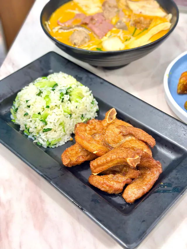 可以自選一個米線,同一個菜飯,仲有一款小食加兩個甜品、飲品,超抵!🪄麻辣八寶米線Hot & Spicy Assored Rice Noodles(貢丸、魚蛋、豬肚、腩肉、豬膶、牛肉、魚片、炸醬)(Fish Balls, Pork Stomach, Pork Ribs, Pork Liver, Beef, Sliced Fish Ball,, Pork & Mushroom Ball, Minced Pork)超級多料,米線彈牙掛湯,大大碗抵食又飽肚,個人最愛魚片🪄果醋豬軟骨菜飯Fruit Vinegar Tenderous Ribs w/ Vegetable Rice酸酸甜甜好開胃,豬軟肉質夠淋,菜飯夠晒健康🪄炸鮮蝦韭菜餃(2隻)Deep Fried Shimps with/egetable & Meat Dumpling炸到好脆,配埋泰式酸辣醬一流😎🪄脆皮南瓜粒Crisy Diced Pumpkin有啲似小食嘅甜品,將南瓜炸到好脆,食落好似薯條咁✨🪄脆皮奶卷Crispy Milk Roll估唔到會有炸牛奶食,外脆內甜,作為甜品都不錯🚩 魚米 (北角)北角炮台山電氣道254-280號華凱大廈地下K號舖#addifoodie #addifoodie北角#foodie #hongkongfood #drawing #香港美食 #吃喝好去處 #週末好去處 #goodfood #周圍食#foodie #foodiehk #hkfoodblogger #魚米 …查看更多