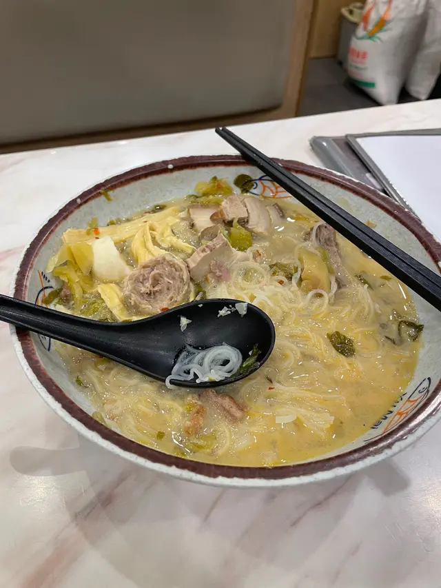 今日去咗「魚米」試吓佢哋嘅招牌魚湯米線,真係好滿足!🥰呢碗米線睇落就已經好吸引,魚湯呈奶白色,香濃得嚟唔會過膩,一啖飲落去就感受到魚湯嘅鮮甜味,仲有啲淡淡嘅魚香,真係好正!🐟 配料方面都好豐富,有滑溜溜嘅腐竹卷、彈牙嘅魚腐、嫩滑嘅肉餃同埋爽口嘅芽菜,每樣都好夾湯底。尤其係腐竹卷,吸晒湯汁之後入口即化,真係令人回味無窮!😋米線本身煮得啱啱好,唔會太軟爛,保持住少少彈性,吸晒湯底之後更加惹味。加埋啲蔥花同香菜提味,整體感覺清新又有層次。👍呢度環境都幾舒服,服務態度亦都唔錯,食物上枱速度快,非常適合想快快樂樂食一餐好嘢嘅人。如果你鐘意魚湯米線,一定要嚟試吓!💯…查看更多