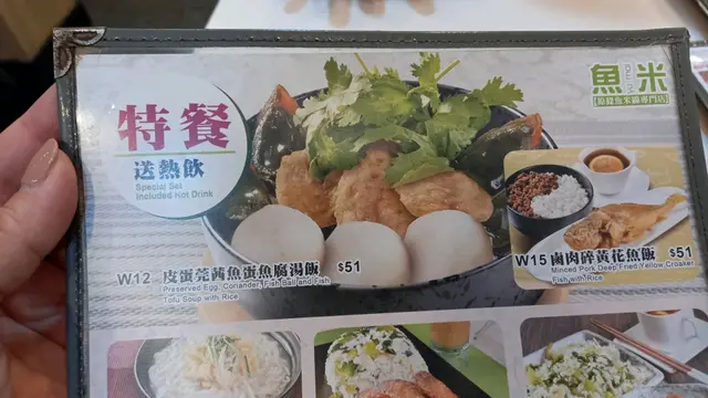 午餐。同事愛吃魚,每隔幾日就四處找魚有關的午餐,今天寵幸魚米。我也愛吃魚,但自小被較育炸過的不太好,所以選了魚湯飯算。order了這些:我的order 圖文總算相符,皮旦魚旦,很難弄得難吃,所以合格,就是那個湯比較咸,吃完很口乾。同事叫了水煮牛肉,他則表示很淡,請問鹽是每碗分別下的嗎?不得不提這裡上菜很慢,慢到第一個餐吃完,第四個餐還未到,要改善啦…蘿蔔牛腩米線,正常。仲有一碗,因為等了20分鐘,一上檯就狂吃無拍照,也屬正常。在荃灣區,以魚招牌的不少,感覺這能在此區生存至今,應該不少人愛光顧,但店舖真的要修葺一下,因為幸運地坐到冷氣滴水位置,我相信我不是第一人,而那個位仍然沒圍封還安排給客人,生意是那麽緊要的話,趕緊維修吧。查看更多