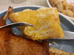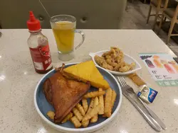 早前台风袭港,在8号风球悬挂,但外面无风的情况下,家中厨房意外被占据,打开手机想食老麦,但又意外地无优惠,于是落街揾食,嚟到呢间门口睇下有乜好食,见到有个鸭髀餐,好特别,鸡髀餐就经常见,间中食,鸭髀餐就第一次见,于是入去试下乜料。呢个餐系鸭髀配两款小食加饮品,我叫咗小酥肉及薯条,配热水蜜桃。结果嚟到时出咗意外,竟然系鸭髀配薯条及西多,于是向店员反映,佢居然话额外送一份小酥肉畀我,而唔系换走件西多,呢个店员认真唔话得,我谂唯一解释系西多唔系咁多人点,所以宁愿益客吧!但即使唔多人点,都可以留畀员工自己食啫,点解要益客?或者惊我食过卦,唔理啦,反正我有著数,一次过可以试食三样小食。杯水蜜桃先嚟,好甜,明显系糖浆水,试过一次就够。薯条系无盐,店员姐姐好好人,拎咗成支茄汁畀我,唔似得麦当劳咁孤寒,一细包一细包咁畀,啲薯条系无盐粗身薯条,食落口系热嘅,比麦当劳或大家乐都好食好多。西多系花生酱馅西多,但馅料唔多,比较啱我,面包亦厚身,比大家乐好食好多。小酥肉绝对系一个惊喜,猪肉条外裹住浆粉去炸,外酥内软,而且还洒上香料粉,系咩香料粉我唔肯定,但其中一样肯定系花椒,但应该咁只花椒一样香料。外酥内软嘅炸猪肉条,加上足层渗透出花椒香味嘅调味粉,将呢碟小酥肉推向另一个层次,非常非常非常(重要事情要讲三次)好食。另一个惊喜绝对系主角鸭髀,炸得非常非常非常透彻,肉质结实,份量非常之充足,与其话系鸭髀,不如话系鸭下装更为贴切,几乎每一啖都有鸭肉香味渗入口腔之中,咩叫齿颊留香?我谂就系呢种情况。$41一个下午茶餐,有炸鸭下装、薯条、半份西多士、小酥肉及热饮,带畀我连环惊喜,绝对超值。就因为呢一个下午茶,带畀我连环惊喜,令我对呢间食店改观,并在之后继续帮衬。…查看更多