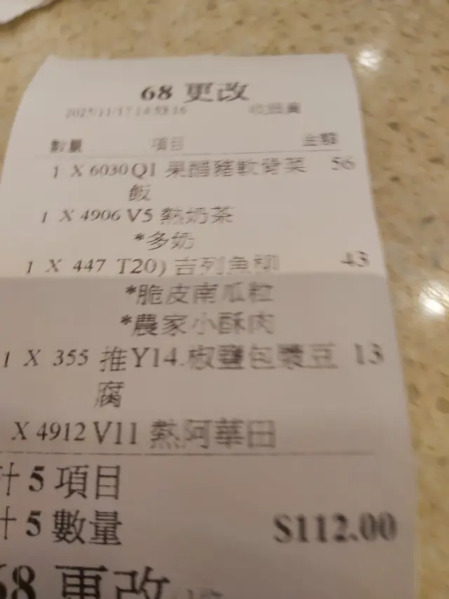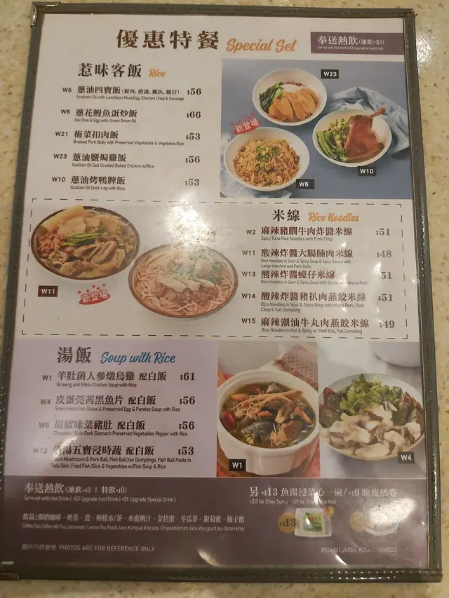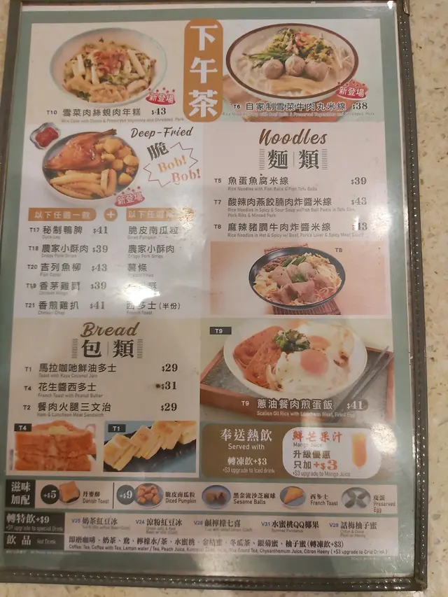 同樣係$56,你會揀邊款?A,小酥肉、炸南瓜粒、炸魚、椒鹽炸豆腐,配熱飲B,蘿蔔牛筋腩菜飯,配熱飲話說早前同老佛爺去飲下午茶,佢老人家話要食飯,但下午茶餐有飯食嘅供應唔多,即使有,款式都非常少,呢間都唔例外,佢於是死死地氣揀咗午餐之一嘅蘿蔔牛筋腩菜飯,而我就繼續試嘢,叫咗一個下午茶餐,包括炸魚及兩個小食,我呢次叫咗未試過嘅炸南瓜及食過返尋味嘅小酥肉,只加小食椒鹽豆腐,咁啱個價錢同老佛爺個午餐價錢一樣,真係估都估佢唔到,當然最後由我包底食埋佢食唔哂嗰部份,唔想浪費,製造廚餘嘛。味道方面,牛腩同牛筋燜得夠腍,要食碎餐嘅老佛爺都食得到,味道都好好,有八角嘅五香味,蘿蔔鮮甜夠腍,牛筋燜得好滑,size唔大,對老佛爺剛剛好,但對我嚟講係太細,唔過癮;菜飯啲菜有啲硬,佢居然食到,出乎我意料之外。魚有魚味,瓜有瓜味,小酥肉炸完後有調味,三樣食物各自各精彩,各自各好食,可惜附上嘅沙律醬少咗啲,多啲就更會好味啲。椒鹽豆腐外脆內軟,可惜太薄,而且椒鹽味唔濃,唔及煎釀三寶嘅炸豆腐好食。總括嚟講,呢餐嘅質素係滿意嘅。…查看更多