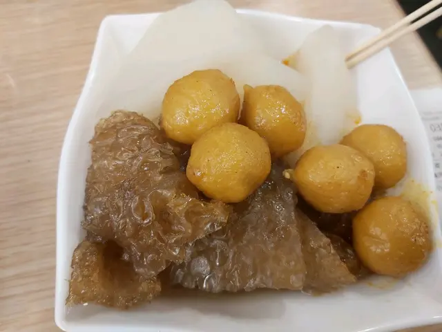 一入去已經有位,唔洗等。始終係鬧市,環境相對地都比較嘈。到落單個陣,我地填咗張車仔麵紙,仲想另外叫啲野食。阿姐一野拎咗張紙就想走咗去😂無理我地仲要唔要其他野,要叫佢返返黎。見到另一個人(類似老闆娘)打單。整體服務個feel伏伏地,所以我地之後有即刻對單,真係落漏咗個野飲(本身用紙仔剔咗一個凍咖啡一個熱豆漿)。但算啦,都係一陣出去叫其他野飲算。蠔皇冬菇清甜蘿蔔咖哩汁河粉 $31食物黎到都中規中矩。河粉係我想食個種,又軟又薄。蘿蔔唔苦但亦唔甜,普通烚熟咗咁。冬菇幾有味,係由乾冬菇浸發出黎醃過。個咖哩汁都惹味,湯底溝稀咗就唔算好濃。無其他咩韭菜芽菜嘅配菜。總括黎講清清地。皇牌咖喱魚蛋6粒 $10 + 混醬腸粉8條 $32咖喱魚蛋確係好食,彈牙有咬口。重點個汁夠入味,少少辣但唔太食辣嘅人都覺得食得到。混醬腸粉啲醬非常足夠