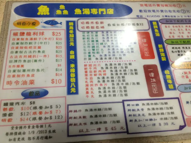 魚鱻魚湯專門店 (荃湾) 网址: https://s.openrice.com/QrLS0GIK000 地址: 香港荃灣路德圍30號地舖 电话: +852 81143549