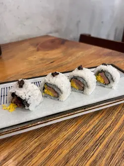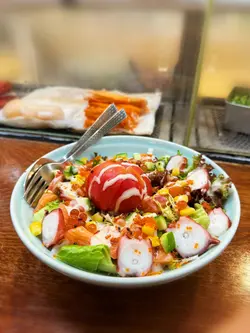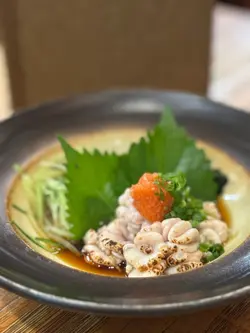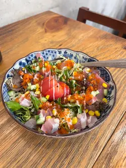 系荃湾广场行完街买左衫👗, 就同朋友过对面呢间日式料理餐厅晚饭, 装潢很有日式居酒屋格调, 设有吧枱和二至买四人枱, 除左餐牌, 店内墙上黑板都有写左一啲时令和特别推介,晚上6点至9点半日本直送刺身都有八折👏🏻*深海池鱼王刺身🐠(半份)店员话池鱼而家系事令食物, 我地叫了半份, 池鱼薄切上枱, 已切好一片片,点小小酱油, 食落爽脆, 食其鲜味*鳕鱼白子🐟鳕鱼白子经过烧炙, 味道浓郁和鲜甜,小小咸咸地, 口感滑顺而带有奶油般的丰厚感, 尤其系冬季最为肥美, 另外亦都可以加葱和辣萝卜蓉伴酸汁, 口感更丰富*鮨一沙律 🥗好大碗, 材料丰富, 满满的鱼生和蔬菜, 色彩鲜艳! 配搭了几款各切鱼生粒,如三文鱼子, 三文鱼, 好喜欢蕃茄, 真系好甜, 混合所有材料一齐食连酸酸地既酱汁, 十分开胃*鳗鱼炒饭🐠🍙炒饭炒至粒粒分明, 结合了蛋香和米饭的嚼劲,加埋经过调味烤制的鳗鱼, 其香甜和酱汁的咸甜增加了炒饭的层次*串烧类:烟肉芦笋串 🍢~ 芦笋系粗个种, 所以有咬口, 烟肉烧到脆脆, 两者一齐食结合了咸香与清爽, 绝配盐烧大虎虾 🦐~ 爽口弹牙烧菠萝 🍍~ 好甜又juicy…查看更多