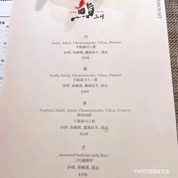 印象中lunch 12件寿司set大概$4xx,lunch omakase(刺身 +寿司)都系$5xx,如果作为入门或者预算唔多又想食Omakase,都可以拣佢。🤑/食物方面,鱼料正正常常,刺身厨师会配上不同调味,例如:芽葱、萝卜蓉、柠檬🍋….,我会觉得太多反而食唔真d食材,所以都无夹晒d调味落去食。🤪/😋我最欣赏当日嘅食物系粒贝,少少柠檬调味先可以带出食材的鲜味,爽爽的口感,越咬越鲜甜,其他食物就无乜记忆点了,感觉就系普普通通,又唔会话难食唔新鲜𠮶只😹/总括,😚价钱实惠和易book系佢优点,但相对地如果讲食物质素,比多1 2百蚊的话,铜锣湾有更多选择,所以建议少Budget同初入门可以一试。😁…查看更多
