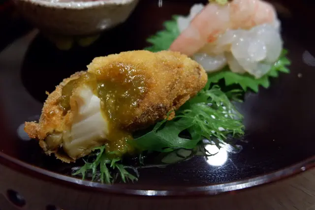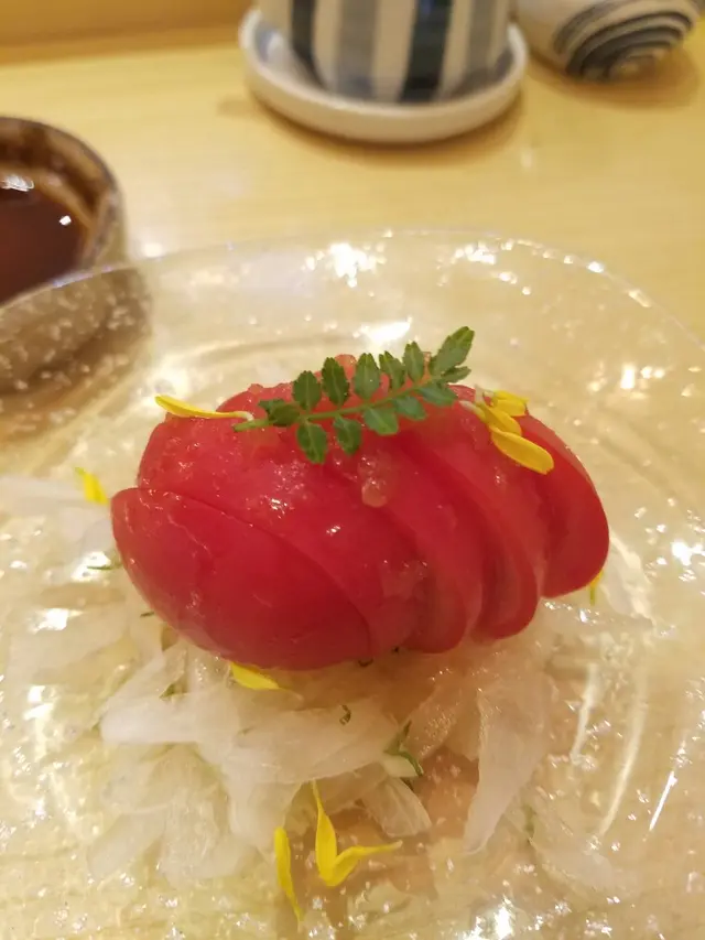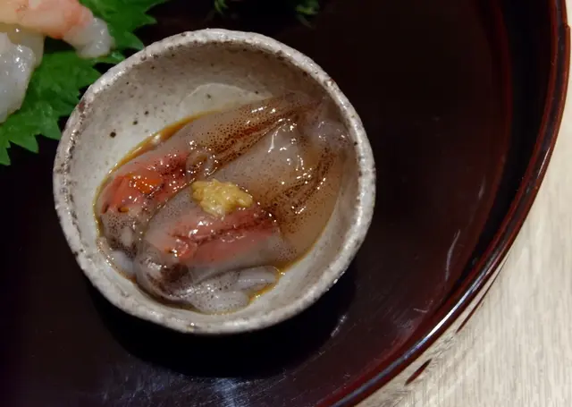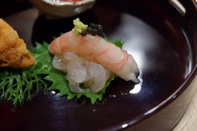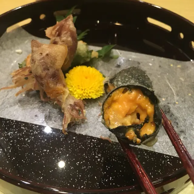 之前没仔细关注所以并不知道需要提前一天预定才能吃到1800每位的套餐,但是由于我并不喜欢吃重复的东西,最后还是请厨师根据今天的食材订两份1800每位的套餐。 虽然非常的突然,但是依然没有让我们失望,马粪海胆依然非常的鲜甜,甜虾也相当的软糯,就连腌萝卜都非常的爽口