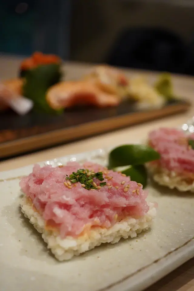 🐟柚子汁橄欖油油甘魚 ($108)油甘魚配上酸甜既柚子醬汁出乎意料地夾,中和左魚既腥味但又唔會搶左魚生本身個鮮味🤤如果怕腥味或少食魚生朋友仔就唔駛擔心👍🏼可以放心試😆🦀️松葉蟹蓋海膽石鍋飯 ($178)食之前係蟹蓋上既蟹籽、海膽同蟹肉味已經吸引左你既眼球😍望落全部都好新鮮,撈埋個石頭鍋飯就更滋味😛溫馨提示: 如果想食到海膽個鮮味就要預先𢳂起,唔係既話石鍋個熱度係可以整熟個海膽㗎😂🍣火炙三文魚芝士卷 ($68)面既三文魚都比想像中厚身好多,用🔥燒過之後,三文魚既肥美油香就更加突出😋雖然加左少少芝士係三文魚上面,但底下配上簡單既卷物又唔會太漏喔😌🔥火炙三味 ($78)帆立貝、三文魚、同甜蝦都輕輕地用火槍灸燒過,燒完嘅焦香喺夾起嗰陣撲鼻而來,增加咗嗅覺同味覺嘅享受😝🍣鮭三味 ($58)一碟有哂唔同食法嘅三文魚:三文魚腩、火炙三文魚同辣味三文魚軍艦,總有一款你會鍾意❤️燒三文魚同三文魚無須多講,反而有驚喜係辣味三文魚,無想像中咁辣,食唔到辣嘅朋友都可以試下😙🍑白桃雪葩 ($68)提供多款時令水果嘅雪葩,有菠蘿、柚子甚至椰子,今次揀左白桃😋白桃清甜嘅味道令人不自覺不停咁𢳂😂食完咁多件壽司之後再加呢個甜品係綽綽有餘🤰🏻…查看更多