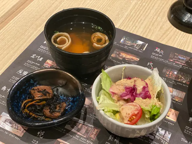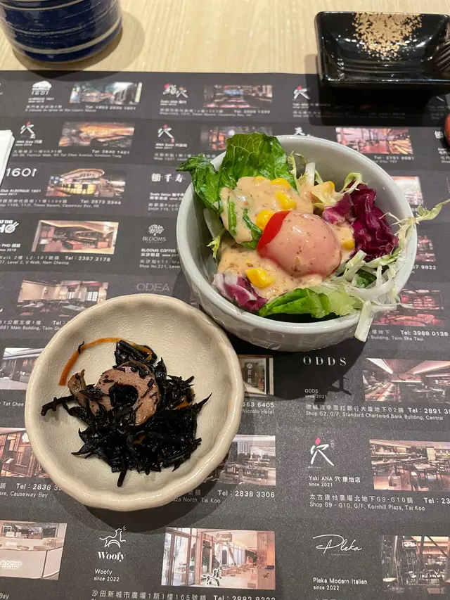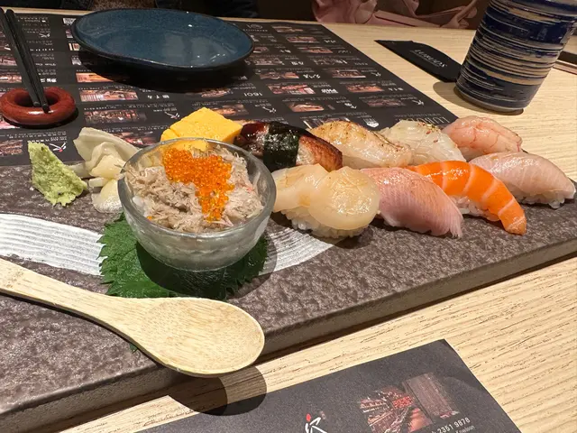 最近工作很辛苦,所以約好友到鮨千寿食好啲,彼此都選了「迷你豪華波士丼」$298,選一款豪華波士丼配兩款不同串燒,配附還有沙律、前菜、熱烏冬或蕎麥麵(自選)及甜品👇🏼前菜和沙律👇🏼加拿大海膽飯,雖說是迷你,但視覺上都是震撼的,滿滿的海膽鋪滿在飯上,那刻真的令人心花怒放🤩個人喜歡的海膽質感是綿密那種,而當天的海膽就較爽實👇🏼牛肋骨肉(左)和燒雞翼(右),兩者都不錯,牛肋骨肉肥瘦均勻易咀嚼,又有白芝麻香;燒雞翼外皮香脆惹味,吃一口時,嫩滑的肉冒出熱騰騰的煙👇🏼熱烏冬,正常,燙口的,小心吃👇🏼迷你豪華波士丼當的選擇…查看更多
