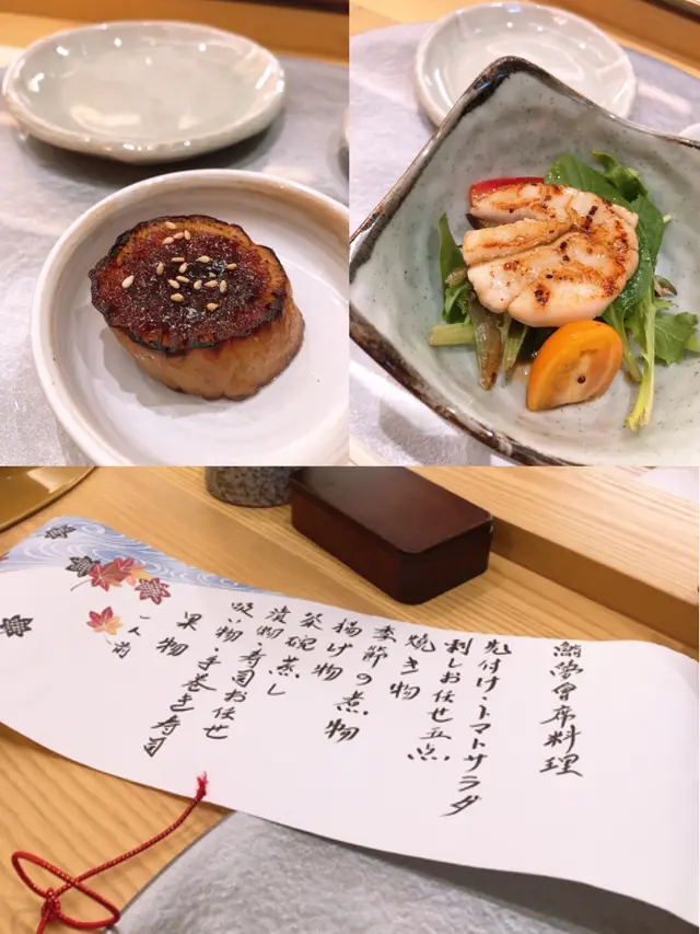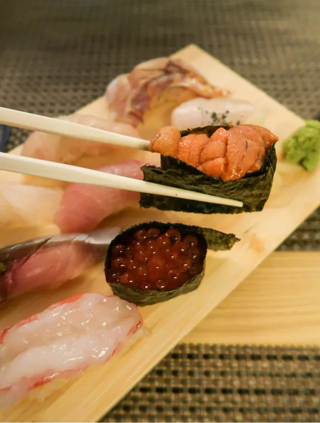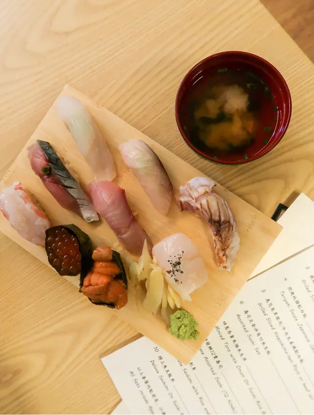 近來鮨店當道,唔小心挑起條癮,就周圍去試各鮨店的omakase。坊間有好多出名的長龍店,但我同朋友都少去,因為我哋大家返工時間都唔穩定,食飯真係要講緣份同心情!今次佢帶咗我去一間隱世小店,俾咗我唔小驚喜。雖然位置比較隱蔽,但門面好清新乾淨,入到去亦見到店家用咗唔少心機裝修,連小擺設同餐具都好出色。因為冇訂枱嘅關係,坐唔到吧枱,但亦有意外驚喜。梳化位空間感同私隱度都十足,大班朋友嚟嘅話,就好似一個小天地咁。午市餐牌選擇都幾多,豐儉由人。而我的目標好清晰,就係Sushi omakase。前菜不過不失茶碗蒸用料都幾豐富因為唔係坐吧枱,所以壽司分咗兩盤上。賣相好出色,飯同魚嘅比例啱啱好,魚身亦好有光澤,飯嘅味道同溫度都控制得唔錯,紫菜又夠脆,整體來講係令人滿意嘅當中比較出色的係三文魚子同貝類。三文魚子卜卜脆又鮮味。帆立貝爽口又彈牙,口感100分。12件壽司,美中不足的是吞拿魚蓉。吞拿魚蓉有跟影響咗口感,但我哋都好欣賞店家好接受意見,馬上重做一件補償返俾我哋。同場加映朋友仔的西京燒最後唔少得嘅甜品整體而言,環境唔錯,價錢算相宜,質素穩定,值得一去。…查看更多
