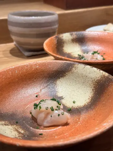 最近去咗上环嘅鮨定山食Omakase,整体感觉唔错,食材新鲜,而且有啲菜色真系几有惊喜!地点方便,上环地铁站A2出口行一分钟就到。餐厅装修几有日式风格,环境舒服。师傅喺面前即制寿司,可以睇到佢哋嘅手艺。今次食嘅系$1788一位嘅Omakase Dinner,先讲吓六品前菜:1️⃣ 北海道缟虾:入口即化嘅creamy口感,彷佛将北海道嘅海洋精华浓缩于一口!😋