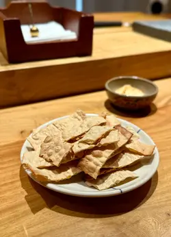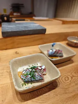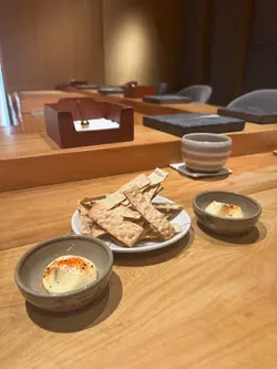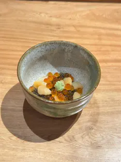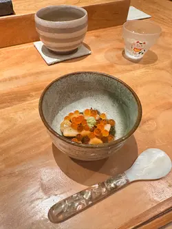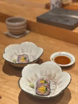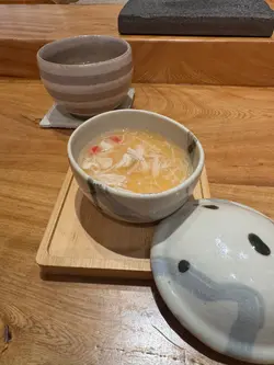 🔹️今次到Bookmark已久位於上環 “鮨定山” 午餐🍣🍶 店內環境整潔衛生🌿 食物新鮮高質😋 師傅刀功了得🧑🍳 服務貼心👩🏻💼 價錢親民💰💫餐前小食以香脆惹味鳕魚片, 配上沙律醬, 開胃之選👍🔸️前菜以新鮮牛蒡、酸蘿蔔、炸菜、薑🫚🔸️蒸碗蒸茶碗蒸味道鮮甜、口感滑嫩,加上肉質鮮甜嫩滑瀨尿蝦, 啖啖滋味🍵🔸️鹿兒島午魚午魚味道鮮甜細緻, 帶有豐富的油脂香氣, 口感幼滑, 肉質肥嫩, 配上自家製醬汁 ~ 以蘿蔔葉、芥末籽、洋蔥製成, 味道酸酸甜甜, 十分清新👍🔸️九州赤貝赤貝色彩鮮豔, 口感爽脆彈牙,味道鮮甜濃郁, 配上冲繩水雲, 令口感更加豐富🥢🔸️春子鯛春子鯛魚肉質鮮嫩幼滑、有彈性, 色澤透白嫩紅🍣🔸️魷魚魷魚帶有獨特清淡鮮味, 肉質具有彈性, 爽口彈牙🤤🔸️甘目鯛甘鯛肉質細緻、味道鮮甜, 帶有淡淡的海洋風味, 口感滑嫩😋🔸️車海老車海老味道鮮甜甘香、肉質飽滿、彈牙爽口🦐🔸️醬油漬中拖羅中拖羅色澤鮮紅, 味道甘香濃郁且鮮甜, 脂肪比例適中、無筋👍🔸️紫海膽以份量滿滿北海道紫海膽 ~ 味道甘甜帶有香氣, 口感絲滑柔軟, 略帶黏稠, 清淡精緻😋🔸️秋刀魚時令秋刀魚味道鮮香, 魚肉甘滋味, 含豐富油脂, 入口回甘🤗🔸️大拖羅大拖羅的味道濃郁甘香、肉質軟嫩、脂肪分佈如雪花般細緻, 帶來入口即化的滑嫩口感, 並有著豐富的魚油香氣😍🔸️拖羅太卷色彩繽紛拖羅太卷 ~ 材料豐富:拖羅、海老、瀨尿蝦、玉子、水雲, 味道多層次 ~ 鮮、香、甘、甜👍🔸️麵豉湯麵豉湯以濃郁豆香味、鹹味與鮮味🥣💫甜品焙茶雪糕味道帶有溫潤的堅果、茶香, 以及烘焙後獨特的木質香氣, 粟子雪糕味道香甜、綿密且帶有溫和栗子香, 配上香甜紅豆蓉和煙韌軟糯蕨餅Yummy🍧…查看更多