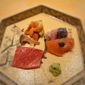 终于一尝友人推介的鮨慎 也指定日本师傅Kami san为是次用餐师傅特别深刻印象这家自家制招牌的昆布海胆一团软软金黄的海胆与昆布紧贴交织成一份软心绵滑的口感两者之间互不抢去对方的鲜味和特性 海胆鲜甜但不算太浓郁 细尝下淡淡的昆布味道也在后端散发出来整体感觉比一般海胆更加让人回味和印象深刻首次吃到友人大赞的𩽾𩾌鱼肝 果然是无法形容的滋味入口是一种软心绵密细腻 甘香浓郁 没有丁点内脏腥膻 这部分绝对是意外惊喜 两三块拖罗薄片重叠加重呑拿鱼应有的鱼香肥美没有太多根部的薄片 更体现出师傅刀功了得的技能 甜虾和赤身也新鲜美味得简单直接前者味道肉质鲜嫩带少许黏性虾味甘甜后者𠝹纹后的肉身更有弹性鱼香 也是当中较重酸味的喜爱一款还有 同伴最喜爱的渍物 酸姜萝卜也好合我俩口味味道不会过酸或呛喉 切件大小也是恰到好处日本师傅Kami san见到我俩好喜欢渍物不只每次吃光后快手补上 又拿岀一整条大根说笑要送给我们吃而且他的刀功和待客服务都很不错 临走时也会亲身鞠躬送客为表谢意﹆茶碗蒸﹆慢煮八爪鱼﹆鱿鱼﹆中拖﹆甜虾﹆左口鱼﹆深海池鱼﹆𩽾𩾌鱼肝﹆赤贝﹆昆布海胆﹆金目鲷﹆赤身 ﹆大拖罗﹆黑鯥鱼﹆紫苏呑拿鱼蓉手卷﹆玉子烧﹆水蜜桃/曲奇雪芭𓏭𖤥 鮨慎 中环安兰街18号12楼𓏭…查看更多