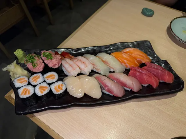 秋刀魚啊秋刀魚,一年得9至11月先見到你所以一見到menu有你就唔好怪我唔客氣luuuWith respect吃乾抹淨我心中感恩本身最掛住嘅「豪華海鮮飯」都有啲被比下去留返個胃口食兩款當季限定#秋刀魚刺身壽司 & #秋刀魚刺身秋刀魚一上枱就閃令刺身嘅油光最明顯啖啖肉絕對係前者嘅刺身淨食不過個人鍾意後者多啲醋飯嘅酸度同秋刀魚好夾油香食落更明顯另一個好消息係逢星期五開業至2am即係宵夜串門都仲可以慢慢嘆個人認為必點嘅item 2係「真綢魚頭麵豉湯」用原個真鯛魚頭熬製當然唔係啖啖肉但魚頭個頭大食落肉量都唔惹少每次嚟都必點有趣嘅係今次飲到嘅湯感覺味道同平時嘅有啲唔一樣較之前飲到嘅清淡啲不過魚油同鮮香依然獨食飲三大碗都幾飽所以極建議兩個人share 第二必食嘅係玉子燒!食覺有鰻魚玉子燒同明太子玉子燒都好食不過前者係限定款明太子就on regular menu 玉子軟嫩明太子鹹香濃郁幾重口味兩者配合起嚟個甜鹹度拿捏得啱啱好食一次讚一次厨房嘅發揮都幾穩定「鐵板鹽燒豚肉拉麵」拉麵上枱都幾香麵條咬落有嚼勁另外豚肉有豬騷香整體唔錯份量好多我覺得3、4個人share 係最舒適2個人感覺都幾full lol …查看更多
