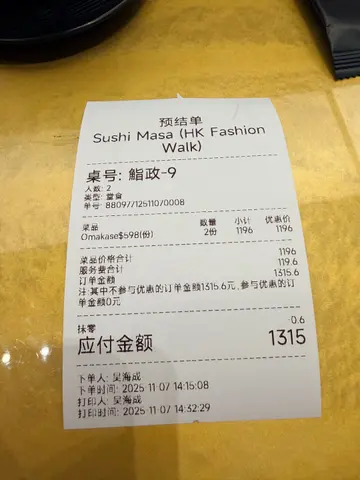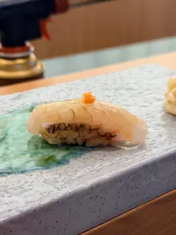 $398 共18品,CP值高!「鮨政 x 大湖」亲民版的厨师发办,质素如何?试过方有发言权!喜出望外,组合富心思,款式全面,制作认真,调味恰到好处,份量足够食得饱。面积不大,全店只有一张寿司枱,可容12人,必须订位。金菇茶碗蒸造型几靓,见到已经好想食,面头啲金菇似瑶柱,入口富咸香更似,蒸蛋非常滑溜,内藏冬菇、肉粒、银杏,足料制作,味道丰富。白身鱼刺身.油甘鱼刺身北海道水八爪鱼色泽雪白,蘸少许竹炭盐吃,一片比较爽,另一片有适量嚼劲。油甘鱼已配上鼓油,回甘味甜,很讨好,可加日本芥末添辛香。矶煮鲍鱼伴肝酱配合自身鲍鱼肝汁的做法无得输,丰腴滋味,跟一口饭最完美,鲍鱼伴肝酱菜式,永远都是亮点。吉列带子伴他他酱吉列帆立贝、他他酱、三文鱼子及紫菜的组合,呢道真心好好食,够热够脆,层次丰富。帆立贝酥脆味鲜,他他酱添润泽,以紫菜包著增层次。角煮豚肉.苹果蓉,青椒非常懂得配,咸甜味道、果酸与肉平衡得很好。有肥膏的猪肉上、添加苹果蓉有助平衡肉腻且添食味,仲有汤汁,又系甜甜的,滋味不腻,最后咬一口青椒,少许辣而已。寿司每一件皆已调味,用上酸度正合我意的赤醋米,刺身新鲜,有鲷鱼、深海池鱼、赤虾、鲭鱼、帆立贝、真鲷。炸沙追鱼热辣辣,如薯片般薄而香脆,炸酱超薄。招牌飘雪鹅肝吞拿鱼寿司招牌菜,在吞拿鱼赤身寿司上、刨下大量红酒煮鹅肝,吃法很有新鲜感,鹅肝以红酒浸腌过已减腻感,再刨成碎粒,轻盈得多,肥美感却保持,溶化在吞拿鱼寿司上,食味大大提升。角切鱼生卷我认为是角切鱼生饭的迷你精华版,有两三款鱼,口感鲜美。海胆甜筒想不到与雪糕甜筒配,更加甘香超甜,极之美味。海鲜汤真材实料久熬而成,奶白汤头,味醇厚。季节甜品即系新鲜水果,超甜蜜瓜,完美的结束。…Read More