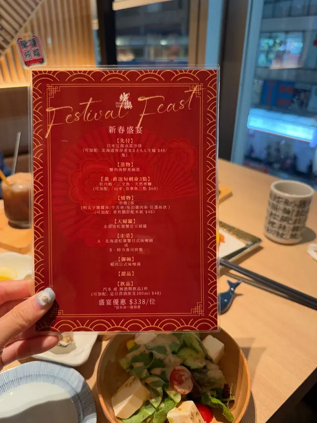 ️多款高质日式前菜、刺身、寿司、主食、甜品🍨🔸先付🥗日本豆腐冰菜沙律豆腐好滑,冰菜有口感,简单配上芝麻酱已经好好食可加配:北海道厚岸生蚝🔸蒸物🥚蟹肉海鲜茶碗蒸蒸蛋滑溜,有足料蟹肉、三文子籽、冬菇等,好丰富🔸「真」直送刺身3点🥢牡丹虾、三文鱼、天然寒𫚕,非常新鲜另可加配:「山幸」吞拿鱼三点 同样抵食鲜甜,拖罗够肥美🔸烧物可任选两款串烧:明太子鸡翼串/牛舌串/免治鸡肉串一样系高质之作,烧得好香口另可加配:香煎鹅肝配米纸呢款极度吸引,鹅肝油份充足,配香脆米纸口感好有层次,食落爽脆,配埋鹅肝油脂、酱汁,超赞👍🏻🔸天妇罗🦀北海道松叶蟹足天妇罗劲大条松叶蟹脚‼️好多肉,食得好爽🫶🏻🔸主菜🦀北海道松叶蟹日式味哙锅有大件松叶蟹、豆腐、菜、金菇等,呢个价钱有蟹锅食,抵👍🏻🍱时令寿司拼盘多款寿司都好高质,新鲜好食🔸御碗🥣蚬肉日式味哙汤,蚬肉大大粒🔸甜品🍦迷你雪糕窝夫,窝夫够脆👍🏻🔸饮品🍹汽水 或 无酒精饮品1杯…查看更多