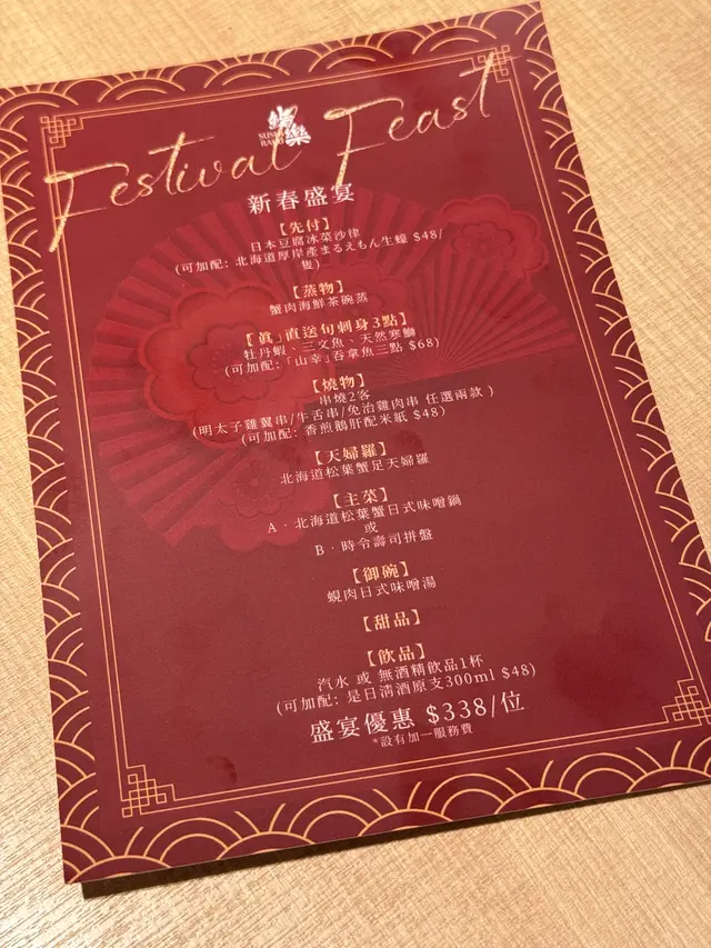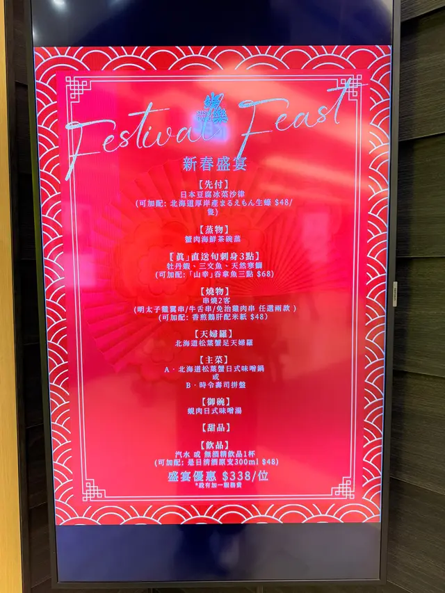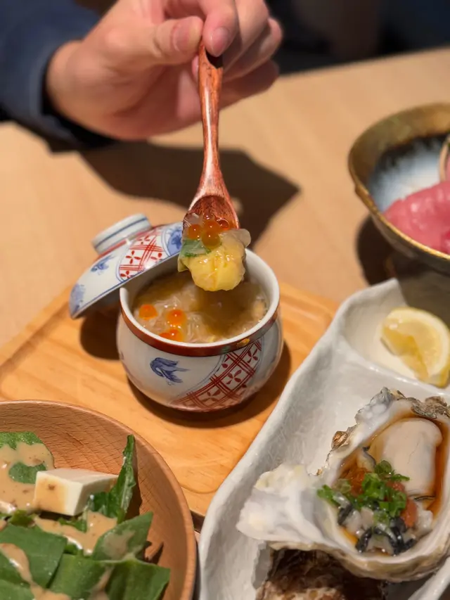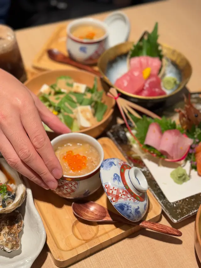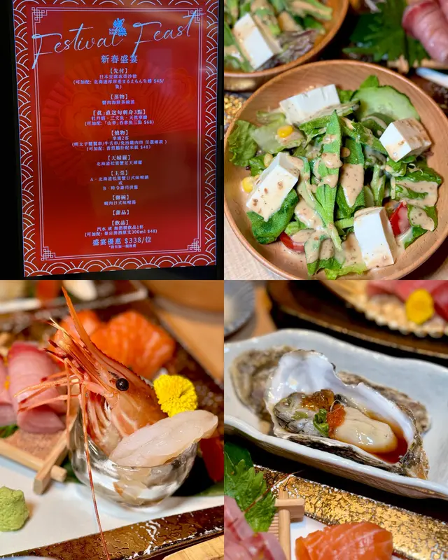 ️多款高質日式前菜、刺身、壽司、主食、甜品🍨🔸先付🥗日本豆腐冰菜沙律豆腐好滑,冰菜有口感,簡單配上芝麻醬已經好好食可加配:北海道厚岸生蠔🔸蒸物🥚蟹肉海鮮茶碗蒸蒸蛋滑溜,有足料蟹肉、三文子籽、冬菇等,好豐富🔸「真」直送刺身3點🥢牡丹蝦、三文魚、天然寒鰤,非常新鮮另可加配:「山幸」吞拿魚三點 同樣抵食鮮甜,拖羅夠肥美🔸燒物可任選兩款串燒:明太子雞翼串/牛舌串/免治雞肉串一樣係高質之作,燒得好香口另可加配:香煎鵝肝配米紙呢款極度吸引,鵝肝油份充足,配香脆米紙口感好有層次,食落爽脆,配埋鵝肝油脂、醬汁,超讚👍🏻🔸天婦羅🦀北海道松葉蟹足天婦羅勁大條松葉蟹腳‼️好多肉,食得好爽🫶🏻🔸主菜🦀北海道松葉蟹日式味噲鍋有大件松葉蟹、豆腐、菜、金菇等,呢個價錢有蟹鍋食,抵👍🏻🍱時令壽司拼盤多款壽司都好高質,新鮮好食🔸御碗🥣蜆肉日式味噲湯,蜆肉大大粒🔸甜品🍦迷你雪糕窩夫,窩夫夠脆👍🏻🔸飲品🍹汽水 或 無酒精飲品1杯…查看更多