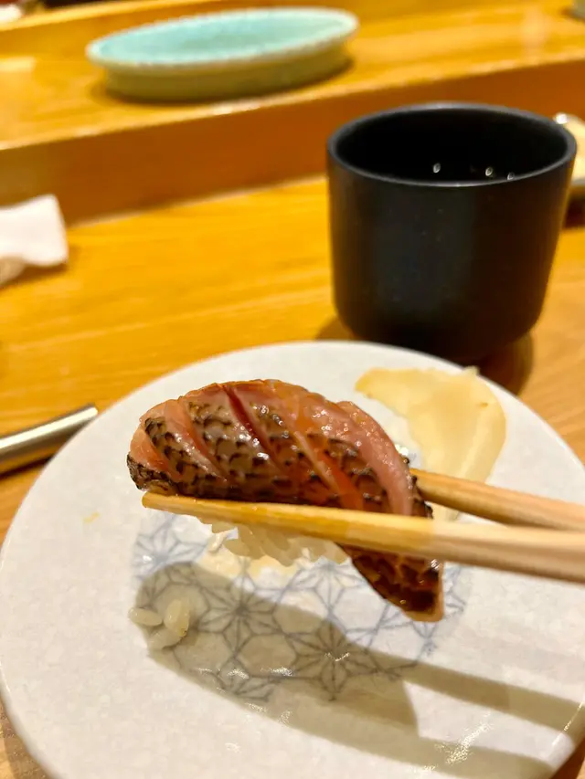 位于尖沙咀中间道H Zentre UG楼的鮨燐而家做紧周年祭季节限定十四贯寿司七折优惠非常抵食先付松叶蟹肉搭配绢豆腐口感滑溜鲜味;金时蕃薯甘露煮口感绵蜜香甜;柠檬醋水母酸甜爽脆十四贯寿司鲷鱼寿司肉质柔韧入口清淡带鲜甜味北海道帆立贝寿司肉质鲜嫩弹牙加上青柠汁可提升鲜甜味鹿儿岛产深海池鱼寿司肉质紧实肥美车海老寿司表面用热水轻焯至转色但仍保持内里肉质鲜嫩紧实同爽脆加上柚子皮碎入口鲜甜弹牙带柚子香气北海道𫚕鱼寿司油脂丰腴肉质紧致软嫩搭配微辣的三升渍面豉酱可减低油腻感北海道产活北寄贝寿司贝肉呈淡紫色轻拍令肉质收紧入口爽脆加上青柠汁更能带出鲜甜味静冈县金目鲷寿司肉质细致胶质丰富用火轻炙入口脂香四溢季节限定的秋刀鱼寿司选用每条大约180g的重量油脂比较丰厚肉质软滑鲜甜配姜葱蓉可辟除腥味北海道喷火湾赤贝寿司贝肉呈鲜红色肉质肥厚爽脆加上柚子皮碎入口带点柚子香气熊本县梭子鱼寿司鱼皮油脂丰富用火轻炙将鱼油渗入鱼肉中肉质鲜美再加上磨香的芝麻入口清香带好香的芝麻味大拖罗寿司油花细致肉质软嫩入口即化,带有丰富的油脂香气及鲜甜味的余韵火炙BB银鳕鱼寿司肉质非常细腻口感滑润入口即化配柚子胡椒酱辣辣地可减低油脂感神奈村黑鯥鱼寿司肉质肥美油脂丰富用火轻炙带出油香气江户前酱油渍赤身寿司结合了鱼肉本身的鲜甜味及酱油的咸鲜风味配搭大葱碎口感细腻鲜甜追加咗我至爱的北海道马粪海胆寿司瓣块呈橙黄色质感软滑味道浓厚甘甜味噌汤配搭昆布豆腐入口浓郁咸鲜甜品自家制绿茶奶冻配蜜渍黑豆,奶冻滑溜绿茶酱回甘配埋蜜渍黑豆甘中带甜…查看更多