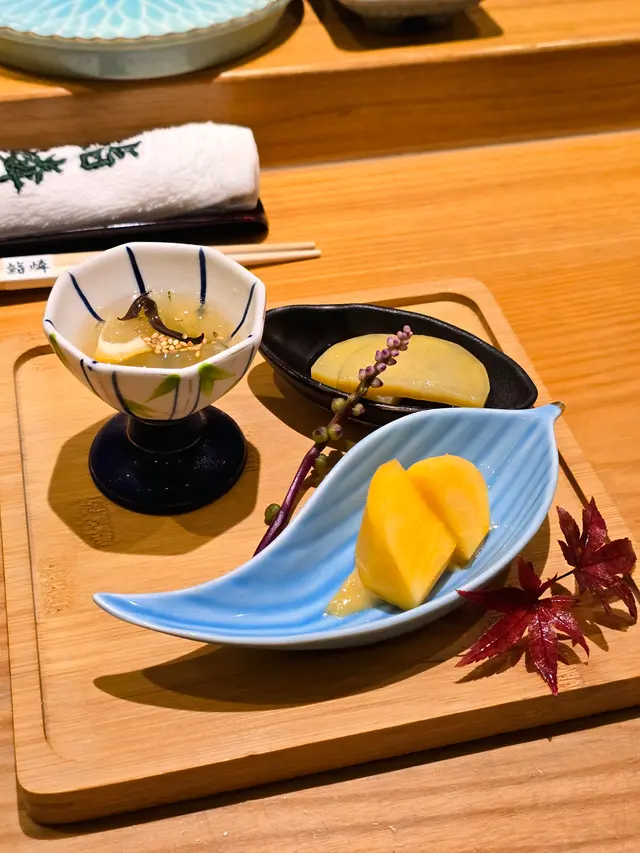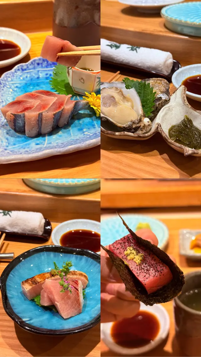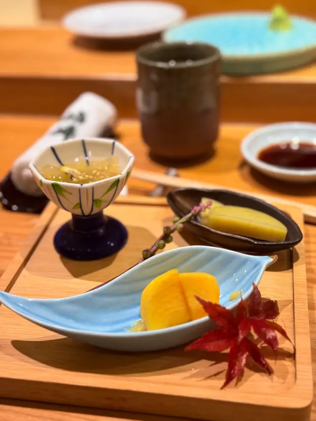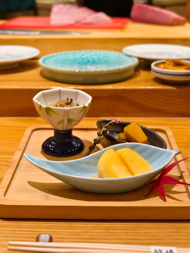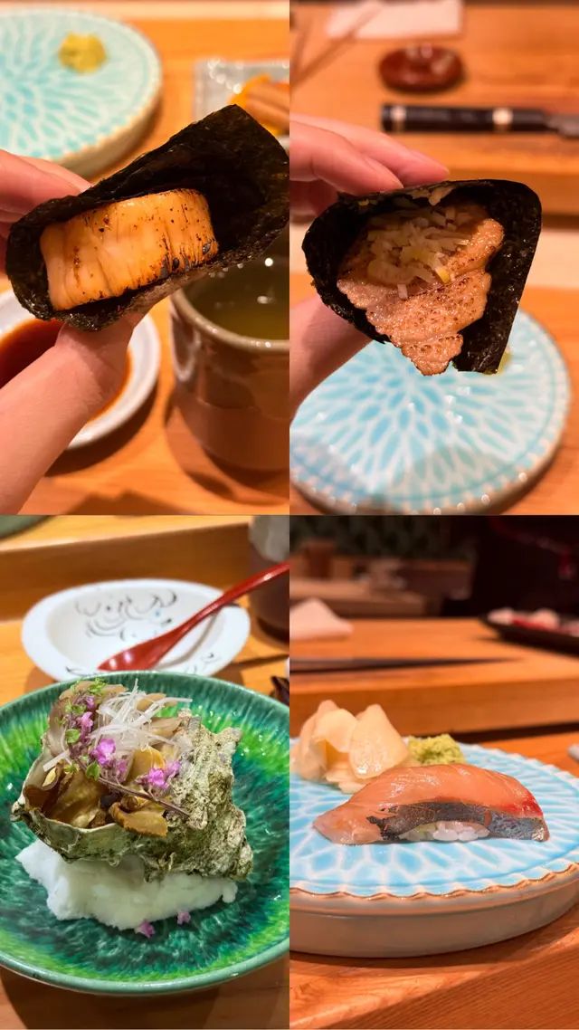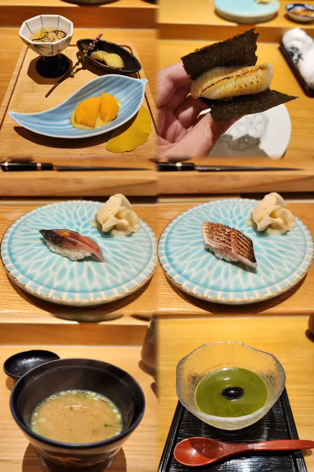 最近餐廳有在做優惠,平日有7折能吃到14款不同的壽司,一次吃過癮!先付一共有三款,分別是清甜爽脆的富有柿,綿滑香甜的南瓜甘露煮和酸甜爽脆的水母。壽司蜜甘鯛肉質嫩滑有彈性,陣陣蜜柑香。北海道帆立貝質感非常嫩,味道鮮甜,加了點青檸皮,挺清香的。深海池魚用的池魚挺肥美的,魚味香濃,質感嫩。車海老 大大隻的花竹蝦,輕輕用熱水燙過,表皮變色了,賣相更好,中間還是保留了蝦的鮮嫩,帶點爽滑。鰝鰈魚一次吃到兩食,分別是魚身的肉和魚裙邊的肉,本身魚味較淡,但加了火炙後的魚裙邊,多了一份油脂香。北海道獅魚腩非常肥美的獅魚腩,經過簡單的火炙迫出魚油香,吃起來接近入口即化的口感。北海道北寄貝新鮮的北寄貝味道特別鮮甜,又嫩又有彈性。靜岡縣金目鯛肉質細膩,有魚皮的焦香。熊本梭子魚肉質鮮嫩,烤過以後帶點鬆軟的口感。這個季節也帶點油脂香。岩手赤貝赤貝新鮮,口感偏爽嫩,味道清甜。中拖羅油脂豐富,魚味亦香濃。BB銀鱈魚肉質比平常的更鮮嫩,再經過火炙迫出香味,加上柚子胡椒來調味。醬油漬赤身味道比較濃厚,濃濃的醬油香,配上本身吞拿魚赤身的魚香。神奈川黑陸是白身魚但有一定的油脂,再經過燒香,令味道更濃厚。麵豉湯味道鹹香,暖胃之選。甜品挺有驚喜的,是抹茶椰子奶凍,有抹茶的香濃,又有椰子的清甜。…查看更多