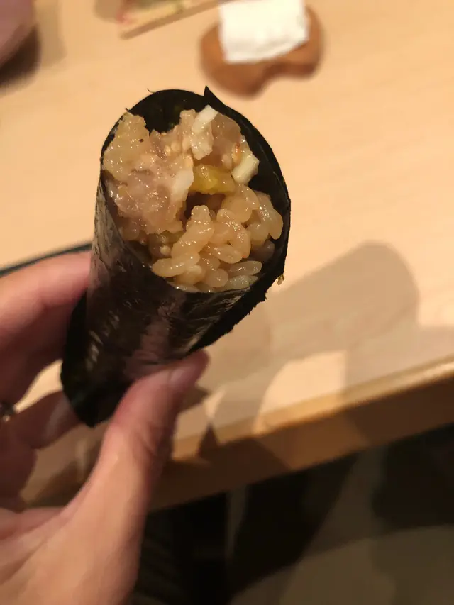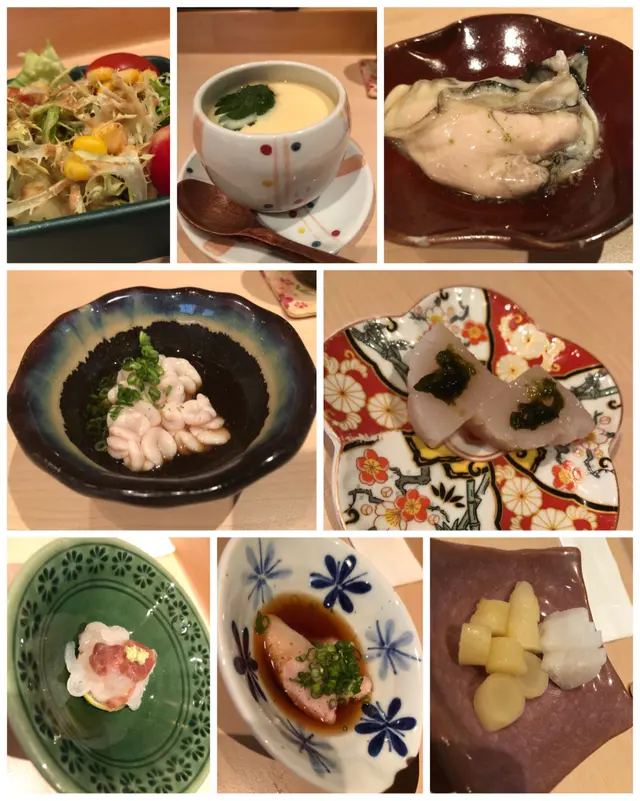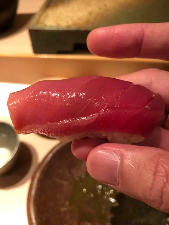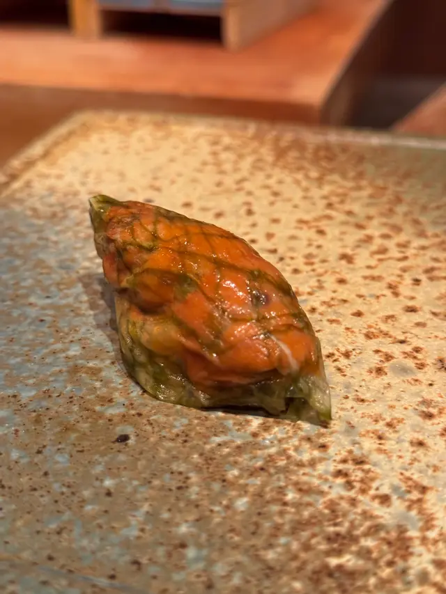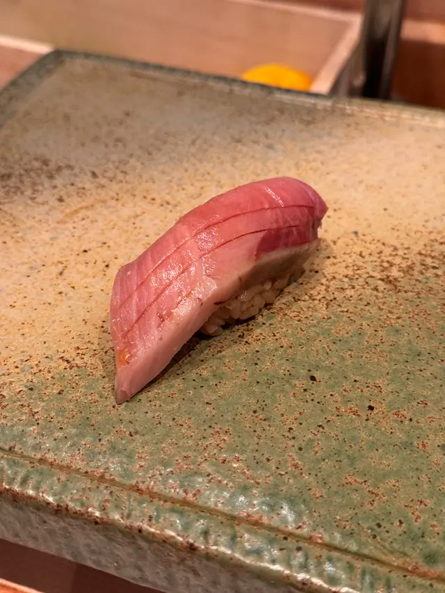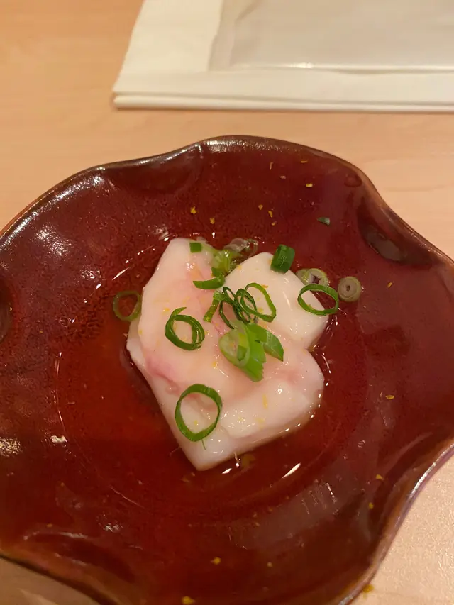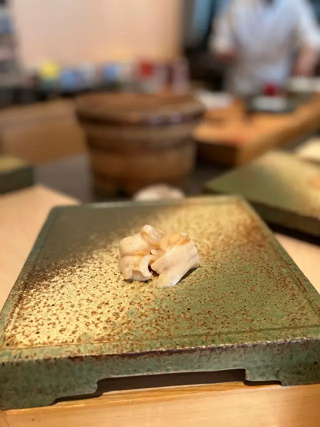 🥰 老友 “意大利長介” 発現 廚師發板 “鮨生賢”, 今日終於帶我嚟見識.🥢 “鮨生賢” 位於灣仔舊商業大廈二樓, 12:25pm 到達, 大門仍然關上, 走廊非常焗熱. 擾攘一輪, 服務員出嚟開門, 第一印象係: 嘩! 咁 “山寨” 嘅? 燈光略暗, 裝修又有點殘舊, 設一張L型十人壽司吧枱, 少少似 “家庭式經營”. “長介” 選擇較平價嘅12道菜午餐, $680+10% (另一款係15 道菜, $880+10%).北海道珍蠔海螺白松貝右口魚帶子軍曹魚銀鱈魚脂肪主鯖魚鰹魚中大拖羅海膽吞拿魚蓉手卷魚湯蕨餅🦪 北海道珍蠔. 忌廉糖心嘅口感, 唔重海水金屬味道, 有趣!🐚 海螺. 以青檸汁調味, 脆口, 清新!🐚 白松貝. 即係日本嘅象拔蚌, 玩切條, 口感充實, 越嚼越鮮甜.🐟 右口魚. 據師傅介紹, 左口魚係養魚, 右口魚係野生嘅. 首先食魚肉, 甜美, 再食炙燒過嘅魚邊, 嘩, 魚油迫晒出嚟.🐚 帶子. 喺廚房燒完, 攞出嚟, 用紫菜包住, 以為完美結合, 事與願違, 帶子少少過熟了.😱 軍曹魚. 我以為師傅講笑, 原來真係叫 “軍曹”, 乃罕見食材, 我忍唔住問師傅 “係咪即係 Keroro”, 口感柔潤, 食落甜美.🍣 銀鱈魚. 出奇地柔滑細緻, 今餐驚喜之一.🍣 脂肪主. 據師傅介紹, 係深海嘅大龍躉, 口感少似貝類. 食落真係唔太似魚, 但又唔會覺得肥淋淋, 有趣!📖 翻查資料: "脂肪主" 又名 "油坊主", 外型似石斑, 體內油脂比例達 40%, 主要分佈於北太平洋日本至美國加州海域, 日本主要產地包括千葉縣, 北海道, 神奈川縣.🍣 鯖魚. 肉質滑溜, 魚味濃郁, 薑蔥蓉味道湧出, 絕配!🍣 鰹魚. 玩煙燻, 煙味緩緩滲出, 餘韻悠長, 冇得彈.🍣 中大拖羅. 熟成一星期, 醬油甘香味道帶領, 成功提升魚味, 又相當肥美.🐚 海膽. 忌廉口感, 合格吧.🤗 吞拿魚蓉手卷. 用火槍燒放魚油, 再撈埋吞拿魚, 香噴噴, 出色!🥣 魚湯. 熱辣辣, 味道鮮甜, 配料嘅魚肉, 睇落簡單, 食落極度嫩滑, 誠意可嘉.🥠 蕨餅. 清爽, 唔會黐𥹉𥹉, 應該係我食過最好食嘅 蕨餅.🤗 總結: 裝修雖然略舊, 但座位舒適闊落, 服務帶溫度, 貼心到位, 殷勤有禮, 服務員行番入吧枱酙酒, 唔會喺背脊攪嚟攪去. 師傅介紹食材非常清晰, 有問必答. 中午廚師發板 $680 定價唔平, 但材料十足, 幾款罕見魚料, 包括 軍曹魚, 脂肪主 等, 淨係個名都夠過癮. 貝類又係岀色, 壽司環節充滿驚喜, 包括 銀鱈魚, 鯖魚, 鰹魚. 留意, 惡人谷對 “鮨生賢” 嘅評價偏負面, 今日絕地平反了, 期待下次再訪.…查看更多