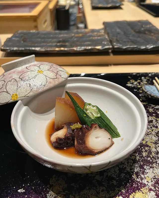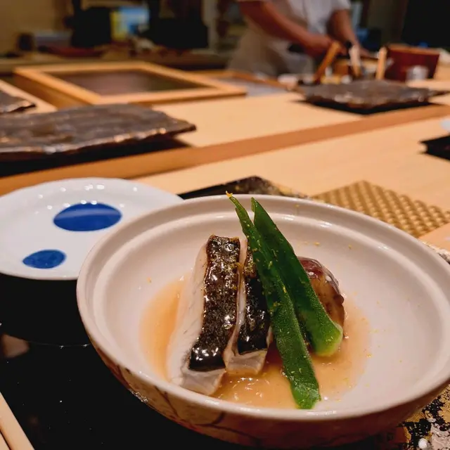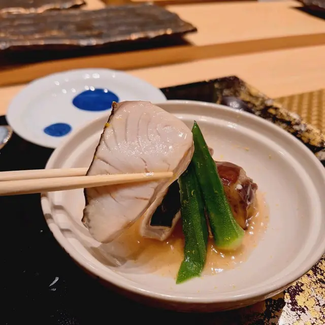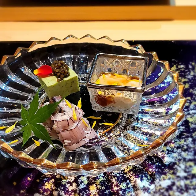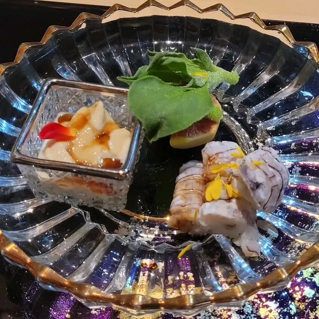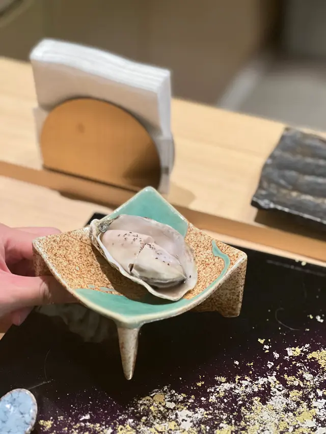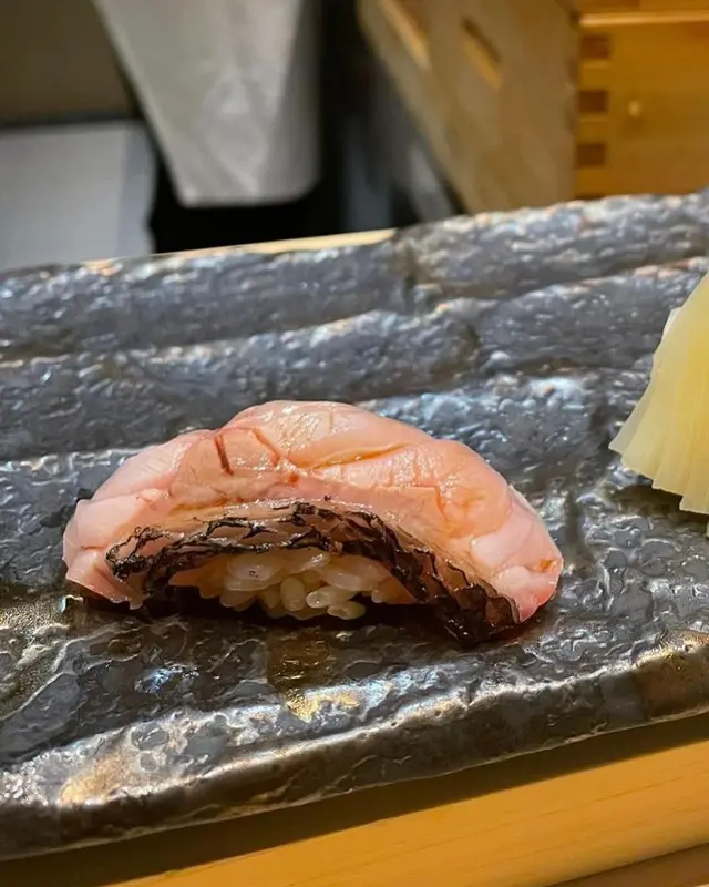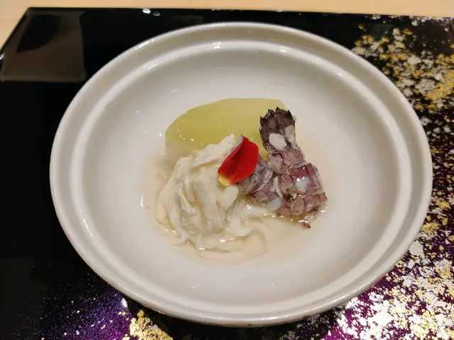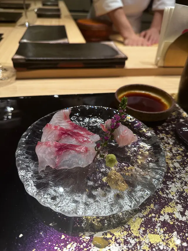 這道前菜以靜崗水果蕃茄為主,入口酸味帶有一絲回甜的風味,非常清新。接著是水澐海藻和帶子,海藻的口感嫩滑,帶子鮮嫩可口。接下來是長崎真鯛,魚肉鮮美,帶有微甜的味道,配上紫蘇花的香氣,令人垂涎欲滴。肉質彈牙爽口,十分美味。隨後是兩種貝類,𨋢貝和赤貝。𨋢貝的口感咬上去後散發出清甜的味道,赤貝也不遑多讓,味道鮮美。白只搭配辣椒蓉和銀雪魚,味道相得益彰,非常搭配。鰤魚的油脂很重,但芥末和柚子醬的配搭平衡了油脂的濃郁感,讓口感更加豐富。接著是燒過的春魚sawala,魚油的香氣在燒烤中散發出來,搭配微燻的紫菜,非常美味。燒呑牙魚鮫則散發出濃郁的油香,令人食指大動。石門鯛壽司中的海膽份量十分慷慨,味道豐富,類似墨魚的口感也很有特色。目仁奈魚壽司已經加了醬油,再搭配蔥,味道更加豐富。系撚鯛壽司的飯燒得剛好,軟熟的口感很好。關鯖魚壽司的味道較重,帶有濃郁的風味。鮑魚青酒湯則搭配了柚子皮,增添了一絲清新的味道。最後是呑牙魚拖羅壽司和醬油漬中拖羅壽司,呑牙魚拖羅壽司的味道近似魚鮫,並帶有海鹽的風味,醬油漬中拖羅壽司則是以醬油漬製成,味道鮮美。整體而言,這道食評評論了各種前菜和壽司的口味和特色,食材的選擇和搭配都很出色,令人回味無窮。師傅及店員服務態度一百分。…查看更多