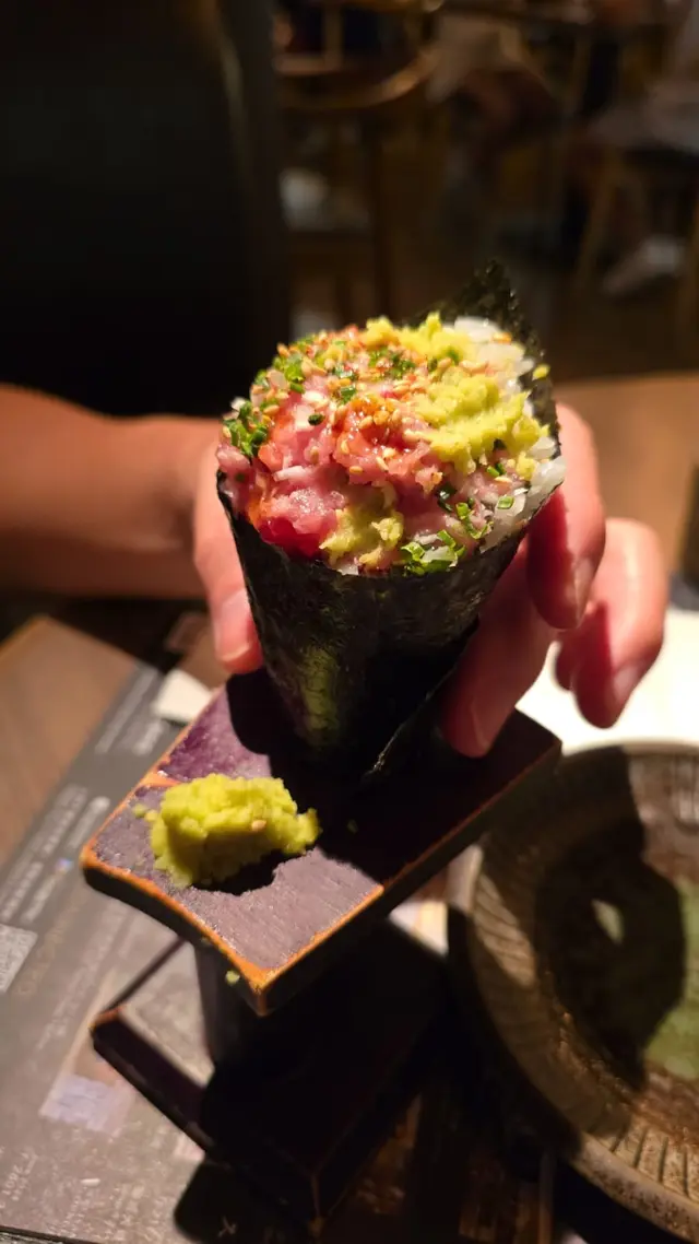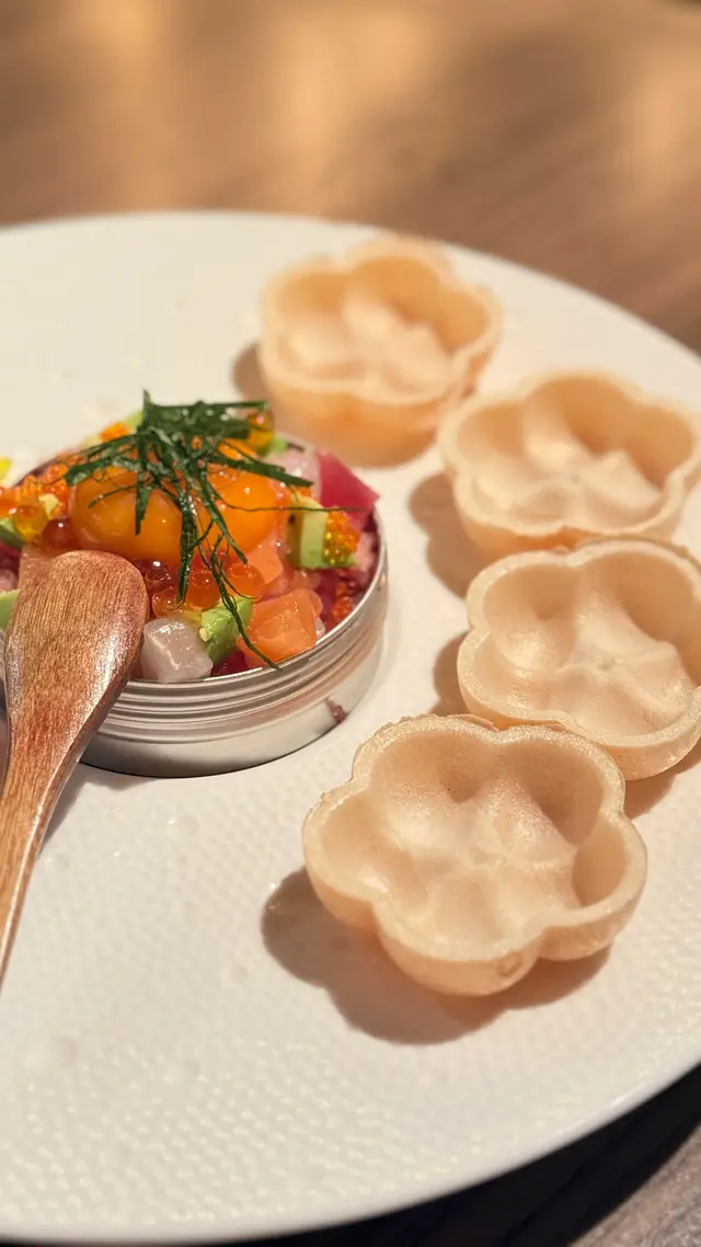 港島上班的日子經常到銅鑼灣覓食,有時諗唔到食咩就會去鮨穴,價位中上,選擇豐富味道也很可以!🫶🏻 ⋄ 魷魚海膽卷|$168⋄ 黑松露蔥吞拿魚腩卷|$128⋄ 時令壽司拼盤|$498⋄ 甘鯛松笠揚佐煙燻鹽|$198⋄ 蟹王粥|$228⋄ 柚子雪葩|$88⋄ 花生醬燒年糕|$68壽司選用當造漁獲空運到港,新鮮就是好 🍣 魷魚好新鮮軟糯中帶韌性,海膽同樣鮮甜黑松露吞拿魚卷入面係牛油果 🥑 加埋忌廉芝士食落齒頰留香,我哋兩個都好鍾意 😋甘鯛以滾油淋熟魚皮再拎去炸,魚肉保持嫩滑,好考功夫嘅做法重點推薦蟹王粥,綿滑粥底融入金黃蟹膏,鮮味濃郁好正 🥰甜品煙韌燒年糕加埋花生醬同砂糖,勁邪惡 😈 細細件剛好,食多兩啖應該會膩 🤣撞正星期三 Ladies Night,百零蚊叫兩個小食,就可以免費 Free flow 兩款 Sake,男士要加 $180 但除開都好抵喎 Ching 😨 加咗啲串燒嚟送酒,白鱔、燒長芋同豆腐都好好味 🥹📍 鮨穴銅鑼灣勿地臣街1號時代廣場12樓1202號舖…查看更多