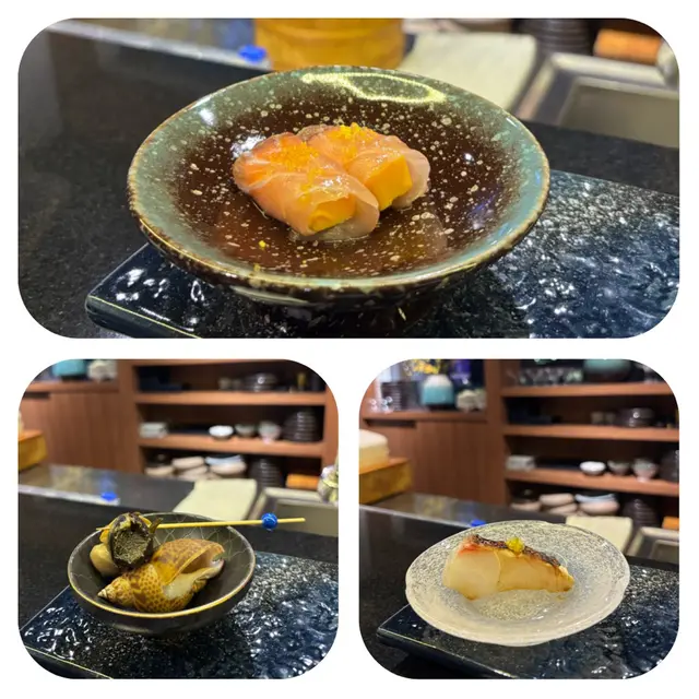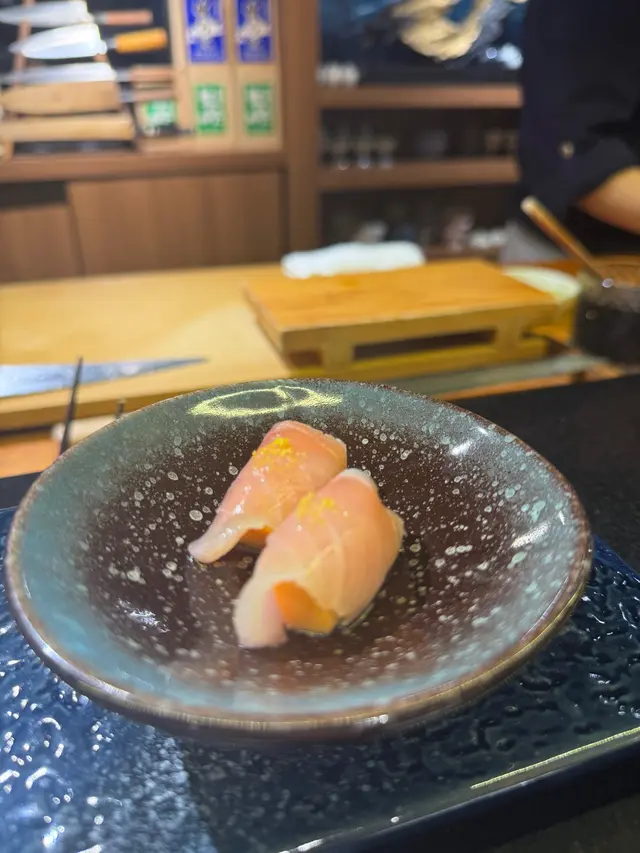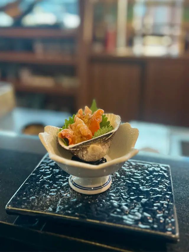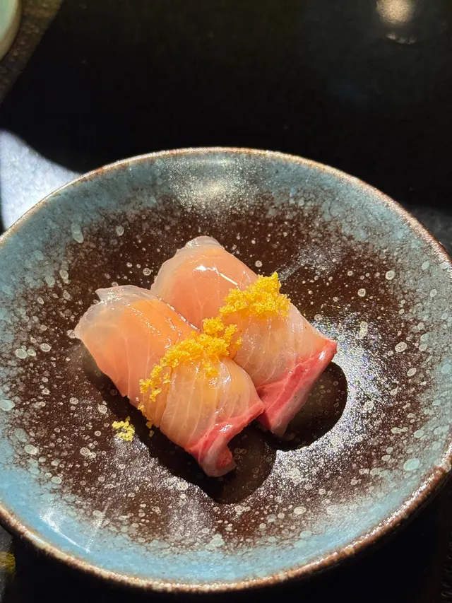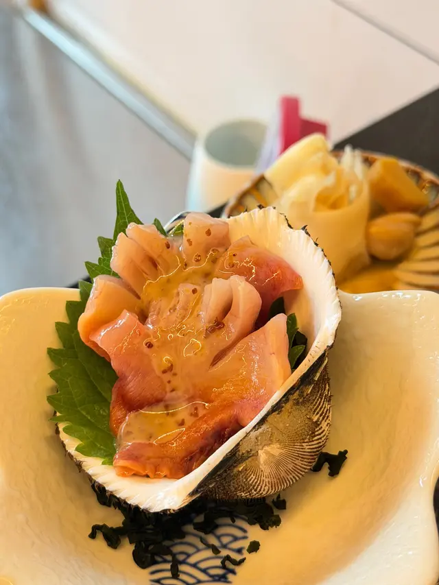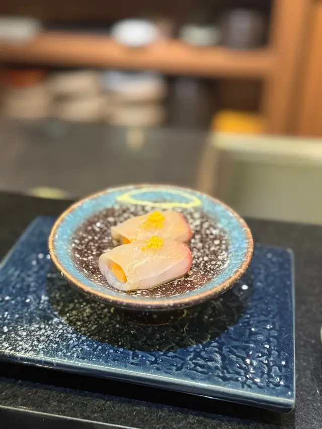同朋友去左一間抵食Omakasa 午餐,木系裝修帶日本風情。Seasonal Omakase Set (全13品)刺身🔸縞鰺魚刺身:魚肉常透明感,入口細緻滑嫩,配搭Wasabi芝麻汁。🔹北海道鱈魚白子:白子入口creamy,加上點綴柚子皮,帶來清香尾韻。🔸白赤貝刺身:赤貝薄脆滑彈,味道鮮甜,搭配蜜糖芥茉籽醬。🔹鰹魚刺身:魚肉肉質細膩,搭配洋蔥漬,清爽中帶著層次。🔸白龍蝦刺身配白海膽:白龍蝦刺身肉質緊緻彈牙,鮮甜高雅,搭配入口即化白海膽,加入龍蝦膏醬提鮮。燒物‘魚喜’魚天婦羅天婦羅炸得外酥內嫩,魚肉肉質滑嫩。壽司🔹真鯛魚:魚肉細嫩緊緻,加入青瓜漬,清新酸味。🔸鮫鰈魚:鮫鰈魚滑順細緻,帶有豐厚的油脂,外層魚邊炙燒後魚油香濃,加入青檸汁、烏魚籽粉。🔹鯖魚:口感豐腴濃郁,配搭磯煮昆布、三星漬。🔸麵豉漬筋子壽司:筋子濃濃鹹鮮味道在麵豉的襯托下更顯豐富,搭柚子片的酸甜,多左一層清新的尾韻。🔹拖羅:油脂豐厚,口感細膩柔滑,加左脆口日本炸蒜。🔸拖羅蓉手卷:拖羅蓉充滿油脂香氣。甜品/餐飲忌廉曲奇雪糕:食到粒粒曲奇碎,充滿冰涼感。餐飲用木造器皿裝住,好有特色。…查看更多