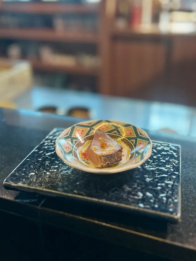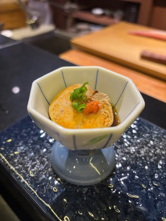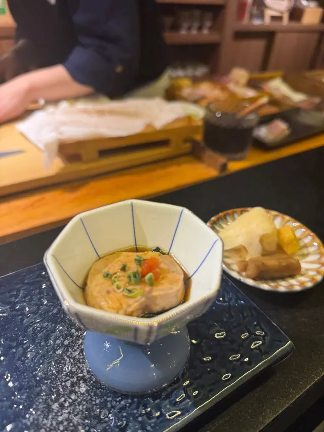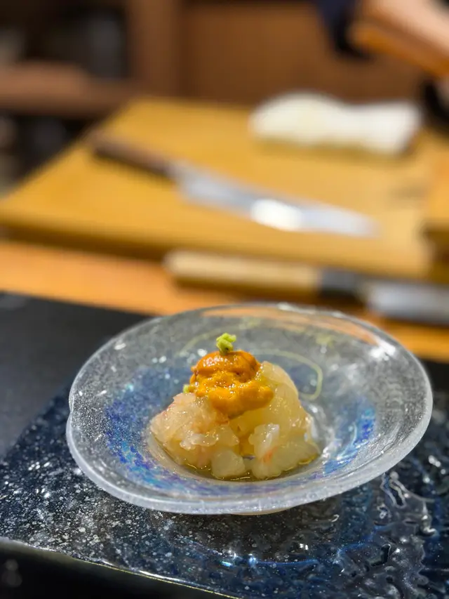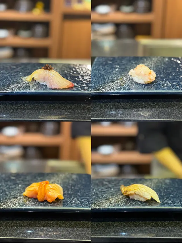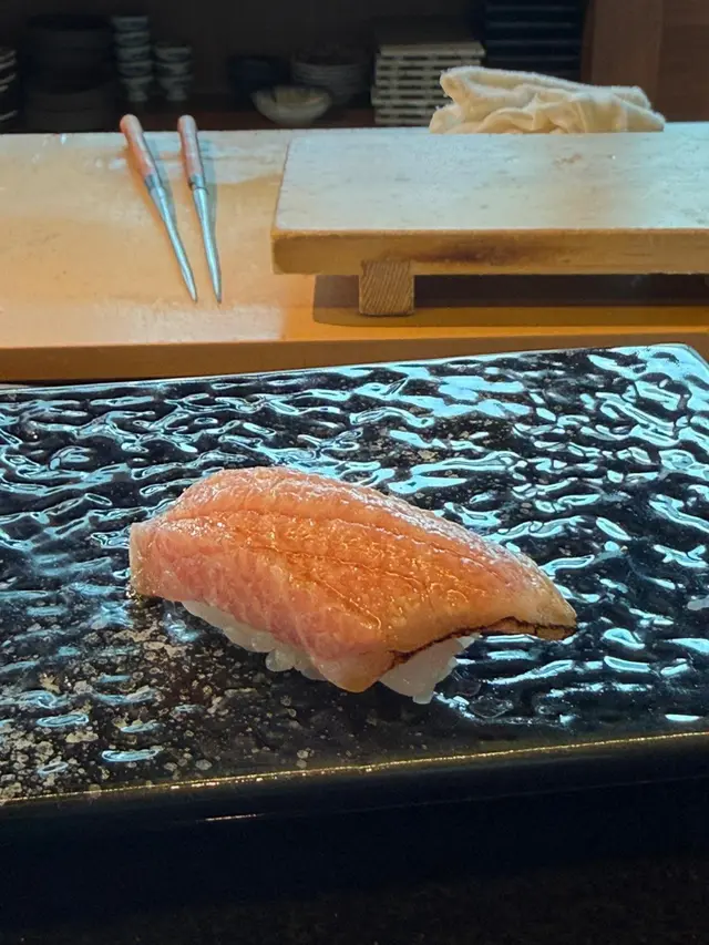 同朋友去左一間抵食Omakasa 午餐,木系裝修帶日本風情。Seasonal Omakase Set (全13品)刺身🔸縞鰺魚刺身:魚肉常透明感,入口細緻滑嫩,配搭Wasabi芝麻汁。🔹北海道鱈魚白子:白子入口creamy,加上點綴柚子皮,帶來清香尾韻。🔸白赤貝刺身:赤貝薄脆滑彈,味道鮮甜,搭配蜜糖芥茉籽醬。🔹鰹魚刺身:魚肉肉質細膩,搭配洋蔥漬,清爽中帶著層次。🔸白龍蝦刺身配白海膽:白龍蝦刺身肉質緊緻彈牙,鮮甜高雅,搭配入口即化白海膽,加入龍蝦膏醬提鮮。燒物‘魚喜’魚天婦羅天婦羅炸得外酥內嫩,魚肉肉質滑嫩。壽司🔹真鯛魚:魚肉細嫩緊緻,加入青瓜漬,清新酸味。🔸鮫鰈魚:鮫鰈魚滑順細緻,帶有豐厚的油脂,外層魚邊炙燒後魚油香濃,加入青檸汁、烏魚籽粉。🔹鯖魚:口感豐腴濃郁,配搭磯煮昆布、三星漬。🔸麵豉漬筋子壽司:筋子濃濃鹹鮮味道在麵豉的襯托下更顯豐富,搭柚子片的酸甜,多左一層清新的尾韻。🔹拖羅:油脂豐厚,口感細膩柔滑,加左脆口日本炸蒜。🔸拖羅蓉手卷:拖羅蓉充滿油脂香氣。甜品/餐飲忌廉曲奇雪糕:食到粒粒曲奇碎,充滿冰涼感。餐飲用木造器皿裝住,好有特色。…查看更多