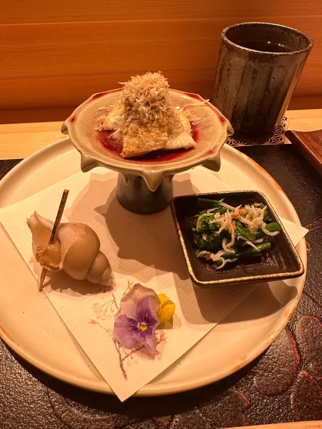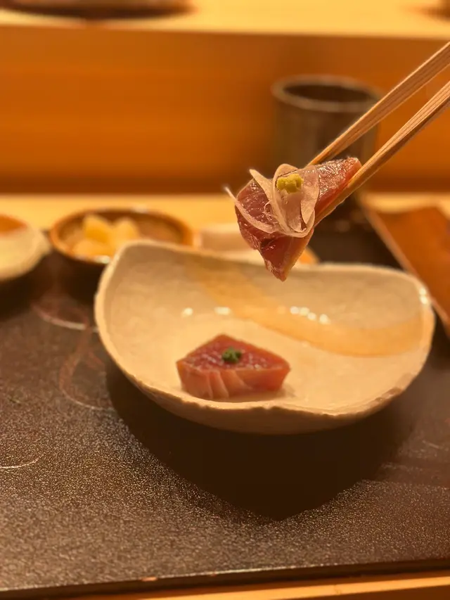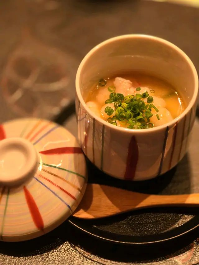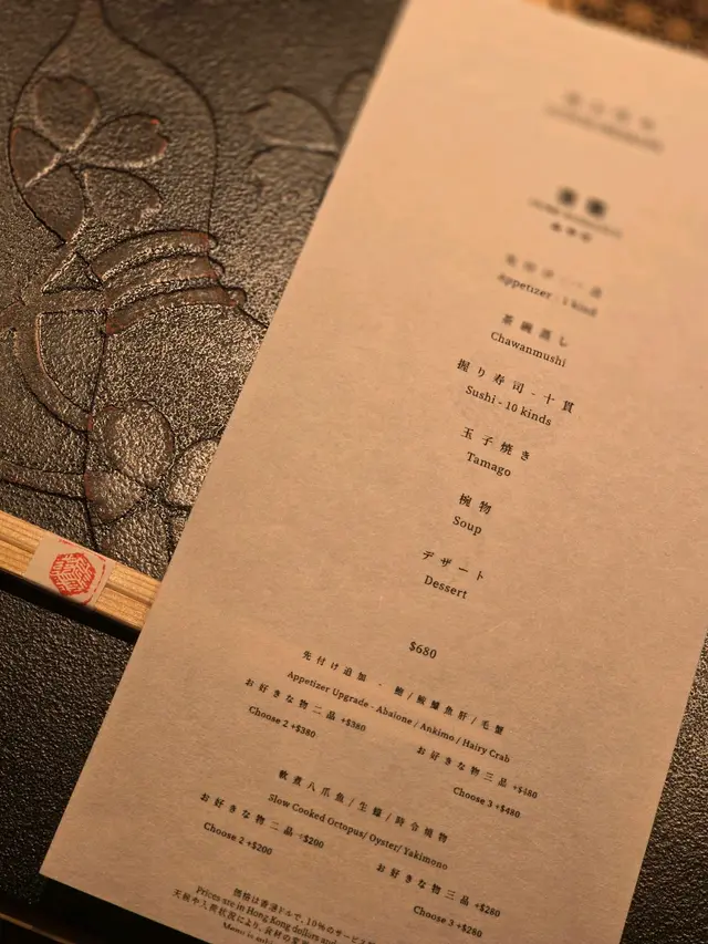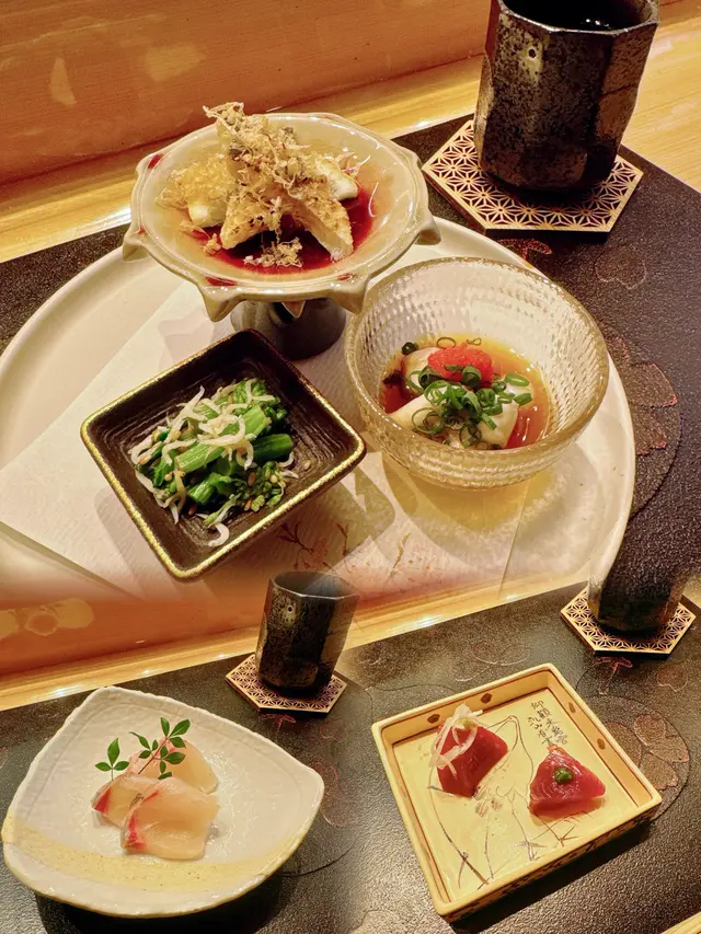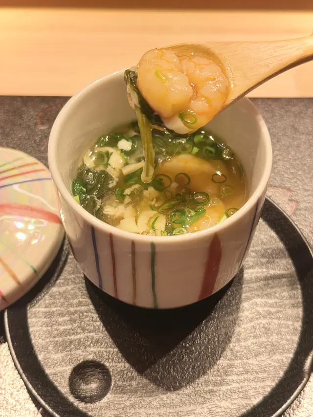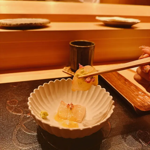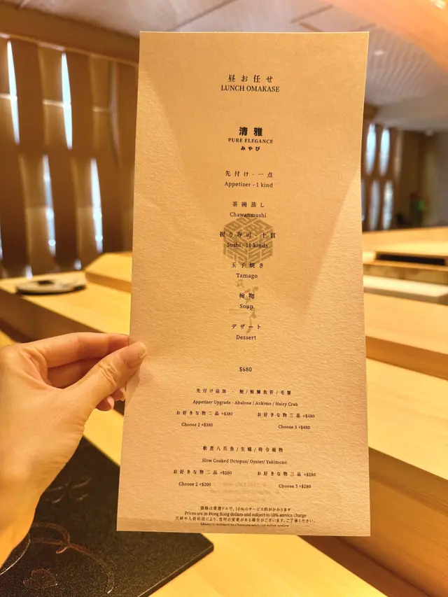 尖沙咀必食廚師發辦餐廳位於海港城,落地玻璃加上竹簾設計,盡顯型格今次同閨密一齊黎品嚐LUNCH OMAKASE 清雅 $680先付 前菜水雲、沖繩蕃茄茶碗蒸用料豐富,蛋香幼滑,內有蝦肉、豆腐握 寿司-十貫我最愛吃壽司,大感滿足,睇住師傅一邊準備新鮮食材一邊觀賞師傅既手勢,令人十分興奮。今次師傅準備了時令的千葉縣金目鯛,特級肥美深海池魚北寄貝炙燒過的北寄貝,爽口清甜超級鮮味牡丹蝦 !連同蝦膏一同品嚐,蝦味相當濃郁和歌山那智勝浦拖羅油脂豐富,肥美肉厚,令人回味無窮北海道札幌海膽軍艦我最愛既海膽🥰🥰海膽非常新鮮,入口即溶,超級鮮甜鰹魚玉子燒非常特別,賣相像海綿蛋糕,味道帶著蛋香和魚香甜品係抹茶布甸鮨央泰尖沙咀廣東道3-27號海港城港威大廈地下G111號舖…查看更多