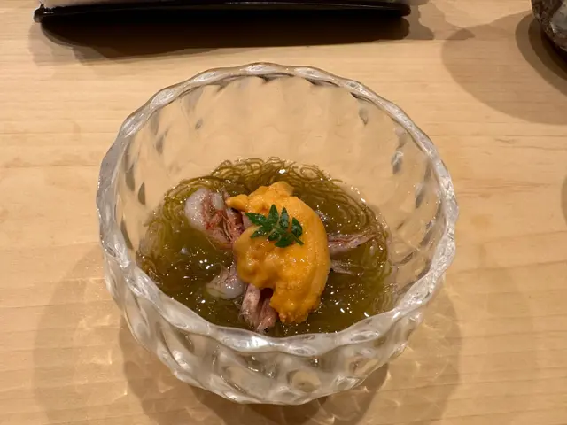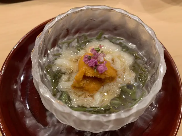 Sushi Saito 質素極高,卻唔張揚。師傅技術一流,每件壽司如藝術品般細緻,入口即融,飯與魚達到微妙平衡。試過河豚、鰤魚、赤貝、夏季蜆貝,鮮味突出,質感滑。清酒配搭亦專業,推介南部十郎吟釀。服務周到得體,侍應默契師傅步伐,同枱客人都覺得寧靜優雅。午市價每位約 $1200–1500,唔係普通人 everyday 去,但若要日式 omakase 真正頂級體驗,呢度係 one off 值得。少講多做,淡薄低調中見功力。…查看更多