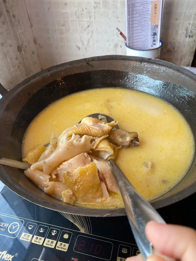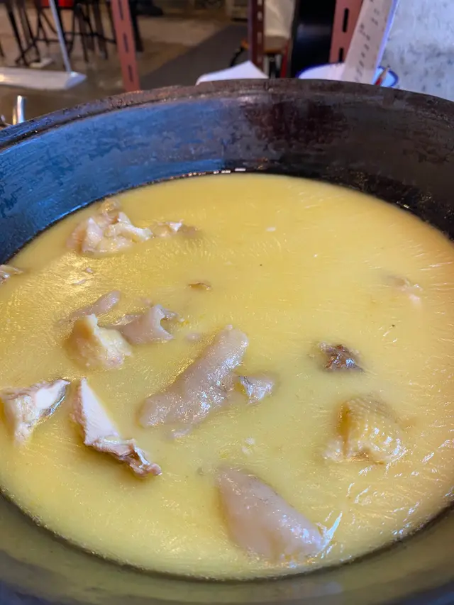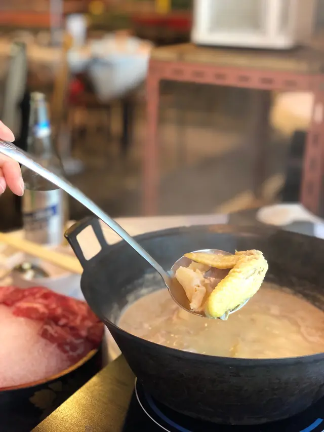 餐廳係旺角嘅一座大廈裏面,餐廳風格好有大排檔嘅感覺,幾有特色。 佢嘅湯底都有唔少選擇,今次我哋就要濃厚原隻雞煲花膠湯。我哋揀細嘅所以就大概有半隻雞左右。佢嘅湯底入面嘅料都算幾多,有半隻雞左右同花膠。而個湯底飲落口都算幾濃味。啲雞食落去肉質都好滑。爆炸薑汁皮蛋貢丸喺Menu上邊見到呢個咁特別嘅試吓佢,食落又真係幾過癮。佢入邊有皮蛋餡再加薑,啲薑食落去似係醃姜有少少甜味。呢個夠特別,呢一個丸幾特別推介大家可以試下。羊肉片佢哋羊肉片係厚切嘅唔似平時其他餐廳切到好薄,但咬落去都好軟腍同埋都好重羊肉味。油麥菜有乜菜都算幾新鮮,同埋份量都合理查看更多
