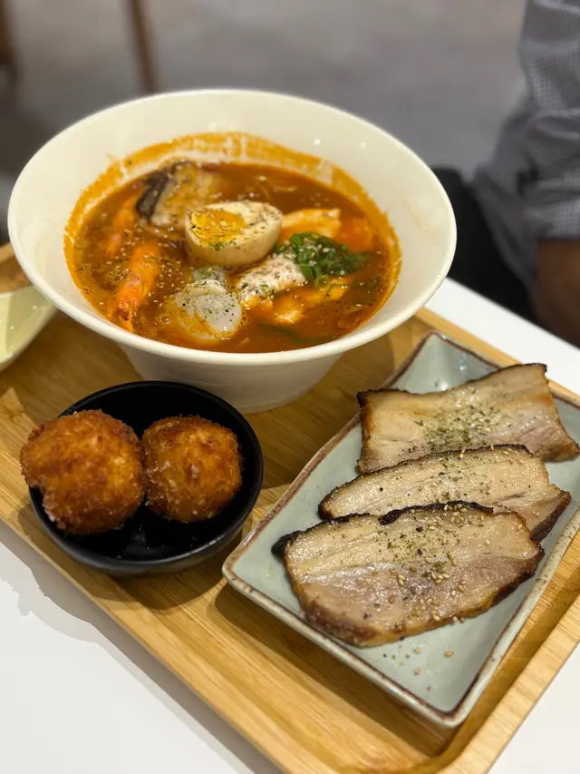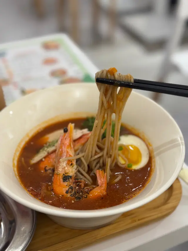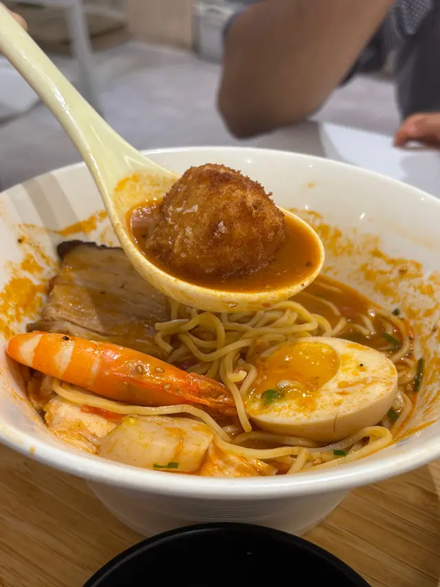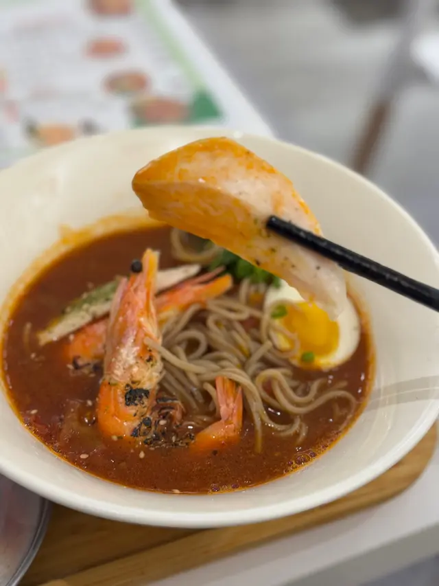 今次黎觀塘 點可以唔去駱駝漆搵食!上網見到其他foodie推介呢間濃蝦湯拉麵好似好吸引 決定今日就黎試一試佢極尚濃蝦湯拉麵係店內皇牌入面配料有有蝦 帶子 雞胸 叉燒蕃茄蝦湯底蝦味濃郁 用咗好多蝦頭熬製 蝦同帶子表現正常 雞胸意外滑嫩 叉燒就比較重豬味 唔係我杯茶 整體黎講湯底好味又濃 係食得出蕃茄同蝦味層次豐富 用足料熬製而成 但下次我會試佢火炙牛板腱拉麵另外 南蠻炸雞配碎蛋沙律炸得夠香脆唔乾身,有少少雪藏味 但$38呢個價錢就算合格Read More