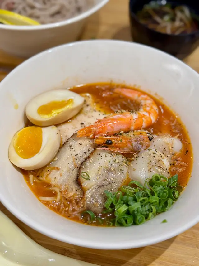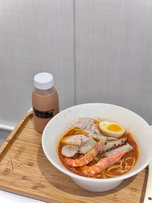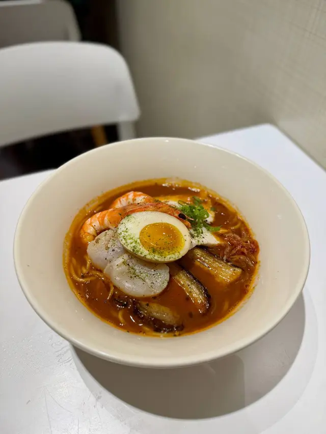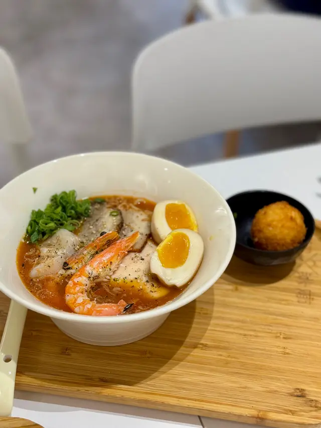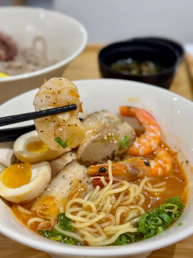 喺觀塘返工嘅友人介紹咗呢間觀塘樓上拉麵店俾我,佢話佢食過覺得呢間拉麵嘅湯底超級正,呢晚我就嚟食返餐試吓😙極尚濃蝦湯拉麵啱晒咩都想試嘅我呀,配料方面有慢煮雞胸、日式叉燒、日本帶子、鮮蝦、仲有招牌溏心蛋🥰 真係勁豐富㗎。湯底用上濃蝦頭番茄湯底,鮮甜美味,老闆話佢哋用上20斤嘅蝦頭熬製,真係飲一啖已經知佢真材實料🦐熊本蠔濃蝦湯拉麵期間限定嘅新品,上面嘅配料有鮮蝦同埋飽滿肥美嘅蠔B🦪 配埋濃郁嘅湯底真係好正,鍾意海鮮嘅朋友一定啱口味。呢度嘅拉麵幾爽彈,麵條又掛湯,食完真係大滿足,好推介大家過嚟試吓🍜 南蠻炸雞餅配碎蛋沙律呢度除咗拉麵,都有沙律同小食供應 。南蠻炸雞好大件,配埋面頭嘅碎蛋沙律食就唔會太油膩 。飲品最特別就係自家製樽仔奶茶,奶茶好有港式風味啊😄食得出呢間拉麵小店嘅湯底真係落足料熬製,真係好鍾意佢嘅濃蝦湯,下次嚟觀塘再食過先得😋Read More