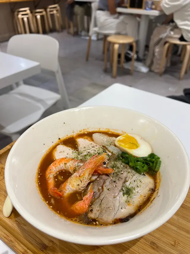 呢間鮮活之味我朋友超級推介,佢喺觀塘返工成日推薦好嘢食俾我,所以今次專登放假過嚟試吓👍🏻食物 :- 極尚濃蝦湯拉麵 主打嘅王牌!超濃蝦湯配上彈牙拉麵,用料好足,有蝦帶子叉燒雞肉,仲有啲啱啱煮熟嘅蝦味精華,打卡又好,入口更加驚艷!- 火炙牛板腱拉麵 見到有火炙牛,屋企人都好鍾意食牛,所以每樣都叫一款試吓,好豐富口感嘅,香滑嘅牛板腱燒到半熟,配上煙韌嘅麵條,啖啖牛味加埋湯底,一流嘅滿足感。另外加左芝脆飯丸兩粒+糖心蛋半隻飯丸外脆內軟,夾埋裡面啲芝士,咬開嗰刻真係好正🙌🏻再加埋蝦湯兩種食法👍🏻糖心蛋熟得啱啱好,蛋黃流心一啲都唔簡單。- 南蠻炸雞餅配碎蛋沙律 外脆內嫩嘅炸雞🍗配埋少少酸甜口嘅碎蛋沙律👍🏻- 自家手沖支裝奶茶 試埋佢哋自家手沖奶茶,入口順滑又唔會太甜,無論配拉麵定小食,都perfect match!整體嚟講 : 雖然係隱世小店,但最出名嘅「極尚濃蝦湯拉麵」講緊嗰個湯底,純正蝦味濃香得嚟又唔會膩,絕對係試過難忘!火炙牛板腱都好好食,性價比好高,下次一定會再嚟食🤪Read More