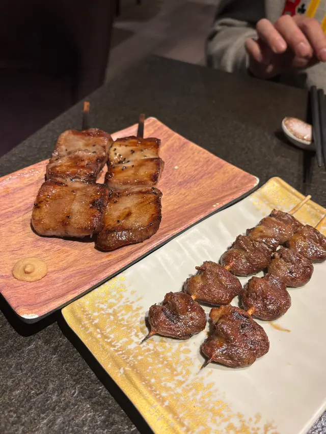 燒扇貝2隻🐚 $88店員話佢哋幾款燒海鮮都做緊優惠,我哋就揀咗燒扇貝試一試!扇貝非常新鮮,肉質鮮甜,相信佢哋都知道自己嘅扇貝新鮮好味,所以只係做咗簡單調味,盡量想突出返扇貝本身嘅鮮味!🙌🏻🙌🏻牛舌心串👅 $68牛舌心口感爽彈,牛味十足!如果要評分嘅話,呢一串牛舌應該係滿分,大家嚟到值得一試!鹽燒牛小排串🐮$38牛小排充滿肉汁,而且中間帶有少少脂肪,令呢一個牛小排多咗一重油香,更加好味!荔枝豚肉棒🐷 $38豚肉鮮嫩唔韌,配埋荔枝肉呢一個鹹鹹甜甜嘅配搭,意想不到地好match!黃花魚一夜干🐟$138唔知呢度有冇人同我一樣,鍾意食一夜干?! 如果有嘅,我推薦大家一定要嚟呢一間試吓,呢條黃花魚一夜干好出色,經過處理之後,黃花魚嘅肉質由軟腍鬆散,變到結實而唔韌,魚味亦都即刻變得濃郁,味道又唔會太鹹,整體都冇乜挑剔嘅地方,好好味!大推介!🤩🤩蒲燒鰻魚飯 $128超長超大舊嘅蒲燒鰻魚,肉質嫩滑啖啖肉,大滿足!…查看更多