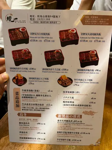 鰻一炭燒鰻魚飯 (旺角) 网址: https://s.openrice.com/QrLS0Ua0C00 地址: 香港旺角山東街84號地舖 电话: +852 24321388