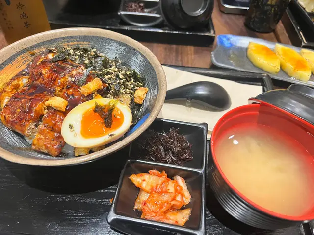 系旺角等劣食专员收工 等到9点几好彩鳗一开到夜晚11点仲有时间 可以慢慢撑枱脚😚呢度主打即场炭烧美洲白鳗可以食到新鲜滚热辣嘅烧鳗鱼之余仲有小食 串烧叫1️⃣炸鳗鱼骨 $28每日限量供应原本以为咁厚骨会好硬点知咬落去 卜卜脆加埋沙律酱又几夹不过就咸咗少少🤏2️⃣蒲烧鳗鱼拼牛舌芯饭 $108因为即烧 所以都等咗一阵卖相好靓 有糖心蛋 炸鱼骨烧汁唔会太甜 有阵阵炭烧香味配饭一流 加咗$10 有蚝肉味噌汤 配菜只蚝都几大只 泡菜好食3️⃣芝士玉子烧$30好似系新出中间有流心芝士 不过不失啦总结以呢个价钱 食到呢个份量都算唔话得!…查看更多