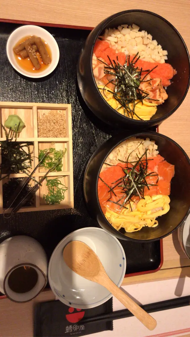 Jr. 鱈卵碗.火炙三文魚拼火炙油甘魚 (半份)