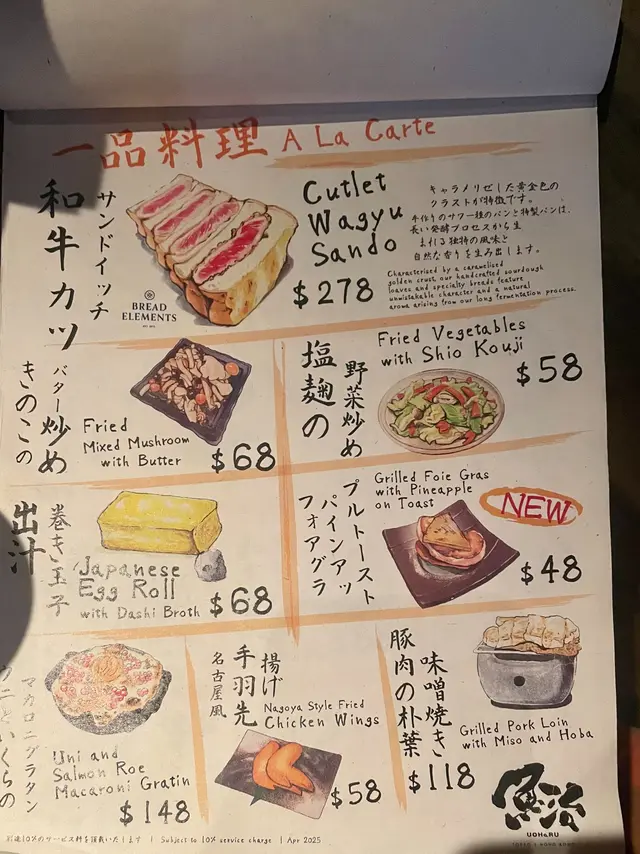 淮山海鲜大阪烧 Okonomiyaki with Yam and Seafood ($78) ★★★★✰此与传统面粉感重的大阪烧很不同,而是使用淮山作为淀粉,有点像薄批薄饼,加上大阪烧的mayonnaise、酱油、木鱼丝,味道不错。表面的虾仁也爽口。整体而言,虽然是集团餐厅,餐牌食物选择也不如一般其他居酒屋多,但这间餐厅以同区同类食肆来说价钱非常合理,坐得舒服,店员服务周到,也值一个solid的「