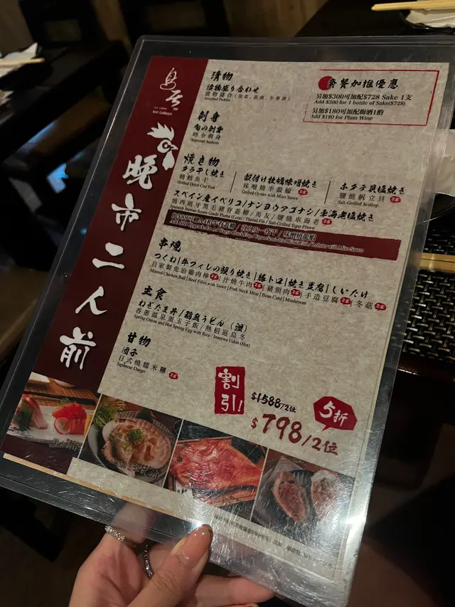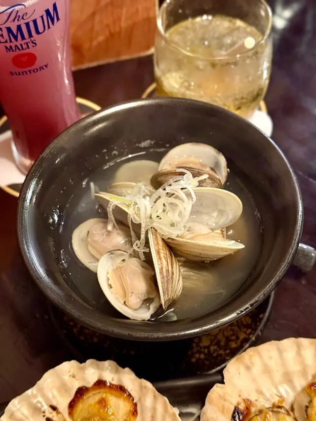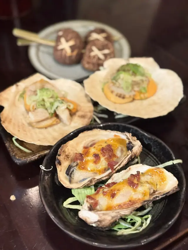 同朋友嚟到銅鑼灣逛街,搵地方食飯傾計,居酒屋是一個好選擇,《鳥居居酒屋》食物種類多,總有一款啱你心意。刺身~磯煮鮑魚、牡丹蝦、油甘魚、三文魚及北寄貝,各款刺身都非常新鮮。味噌燒帆立貝~ 味道做得唔錯,唔會太鹹;蒜蓉牛油燒蟶子~ 好新鮮,喺居酒屋食到蟶子真係好開心!燒鱈魚干~脆卜卜。黑牛頂葉片~ 一口牛嘅size,啖啖肉,牛肉味勁香濃,非常可口!自家製麵豉雞肉棒~配鮮雞蛋,特別美味;燒一夜乾雞翼~ 皮脆肉香,之前都食過其他店嘅一夜乾,呢個係第一次食到咁脆嘅雞翼皮!雞肉大蔥串~ 雞胸肉配大蔥,另一番滋味。燒雞軟骨串~ 燒得啱啱好,十分香脆。燒茄子田樂~ 好喜歡食茄子,這個味道做得好出色。香葱溫泉玉子飯~ 玉子加入醬油嘅飯;日式湯烏冬~ 大大隻冬菇,烏冬好爽滑,湯底香甜。溫泉蛋絹豆腐沙律~ 嫩滑豆腐同溫泉蛋好夾。燒黑芝麻糯米糰~ 糯米團包住黑芝麻醬,熱辣辣燒起,非常香口,正! …查看更多