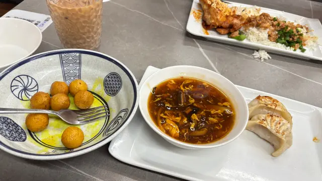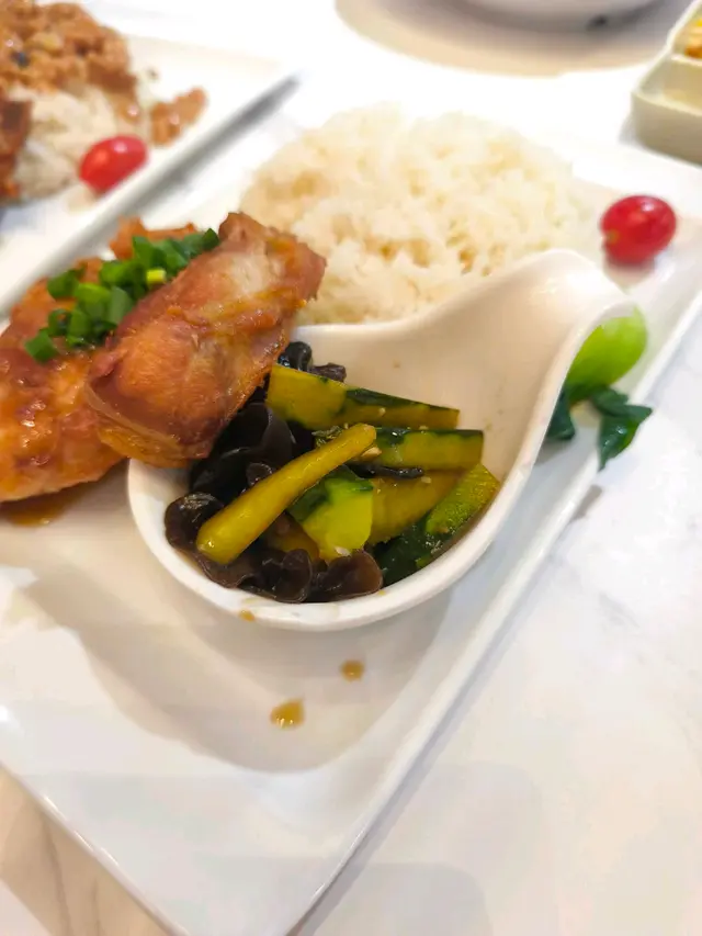 新開咗一排嘅上海嘢,觀望咗一段時間終於決定試下。入到去一坐低,staff就過黎話每人送一碗例湯,出乎意料地好味,好甜 唔似係味精湯,都唔算好油。menu超多嘢揀,睇睇下其實呢間都唔似上海嘢,似係咩都有嘅fushion多啲燒肉醬汁香蔥雞扒飯有包埋個冷盤 木耳伴青瓜。 雞扒煎得啱啱好,幾嫩,但稍嫌細塊。有燒肉汁可以撈飯食無咁dry,啲汁都唔算太鹹,配埋啲蔥係香嘅。冷盤嘅青瓜爽口,但我唔鍾意佢用隻醋太濃味,用返淡少少嘅醋會比較襯佢清新嘅味道。飲品方面,豆漿係杯上,唔係支裝,唔知係咪因為咁可以叫少甜。甜度啱啱好,又有豆香,呢個推。相較之下奶茶麻麻。另外仲叫咗上海金不换肉躁香煎豬扒飯,呢個豬扒比雞扒大塊,好juicy唔會話煎得太乾。肉躁俾得好大方,一定夠撈晒成個飯,金不换輕輕吊下味,唔會好搶,味道balance得幾好。另一大期待花雕醉雞 酒香撲鼻但唔會太嗆,啲雞好入味同好滑。天時暑熱食返啲冷盤cool down好正。上海粗炒有驚喜!本身一上枱見佢唔太上色,仲以為有啲不妙,但食落口又夠味喎,同出面連鎖嗰啲上海店比無咁油/重口味,感覺係健康ver之餘,應有嘅味都無少到,配料都唔少,對得住價錢。呢個性價比,再加埋啲staff都幾好招呼,有下次😻…查看更多