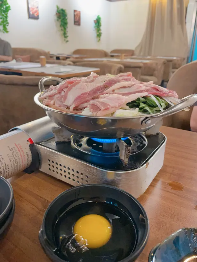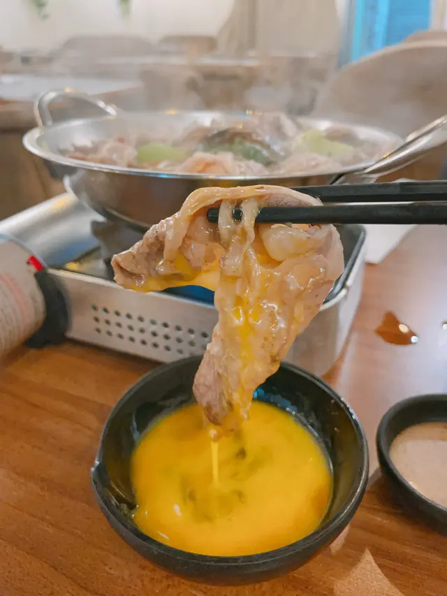 觀塘有為數不少在工業大廈內特色小店,能試好多不同款式,今次經朋友介紹,見網上訂位都幾full,幸好早去店員能安排即時入座,一人一份晚市套餐,每份套餐除左配白飯外,還有沙津、甜品、飲品,點了以下套餐:1. 壽喜燒牛肉鍋定食配橙汁:大量白菜鋪底,上面放滿牛肉及一隻雞蛋,肥牛幾好食,滾住幾好食。2. 泡菜豚肉鍋配熱檸檬茶:同上有大量菜鋪底,放滿豚肉片及泡菜,肉質唔厚口感唔錯。3. 蟹鉗海鮮鍋定食配橙汁:海解有蟹鉗外,還有日式魚蛋及蠔,亦有白菜鋪底,面頭有小棠菜及金菇。沙津菜新鮮好食,而甜品是一粒泡芙,冇什麼特別。服務態度唔錯,上餐速度快,讚讚讚!!!查看更多