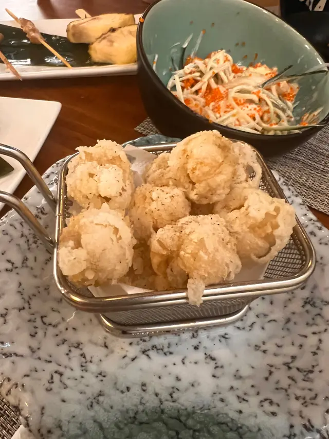 呢間位於觀塘工業大廈嘅日式餐廳,餐牌入邊嘅選擇頗多,除咗有主打嘅燒物,仲有小食、沙律、烏冬、炒飯同多款特式甜品。餐廳訂價亦非常合理,食物質素唔錯,算得上係抵食之選。軟殼蟹沙律($78)- 分量相當大,軟殼蟹炸得香脆,配搭沙律菜食,味道清新,亦好醒神。味醂魚乾($38)- 魚乾入口脆香,熱辣辣,點埋沙律醬食,作為餐前小食真係一流。手打免治雞肉棒($48)- 睇賣相已經夠晒吸引,免治雞肉棒夠晒入味,點埋蛋漿,味道唔錯。牛肉稻庭烏冬($82)- 牛肉份量都唔少,稻庭烏冬入口夠晒煙靭彈牙,鍾意食烏冬嘅朋友絕對可以一試。日式燒飯團($48)- 飯團燒得好香,帶少少飯蕉味。入邊仲有炒米、櫻花蝦等,令到質感同味道都好豐富。朱古力心太軟($38)- 呢個超有驚喜,朱古力味濃郁,切開蛋糕,入邊嘅朱古力醬流晒出嚟。配埋cream一齊食,味道非常夾。朱古力控必食。查看更多