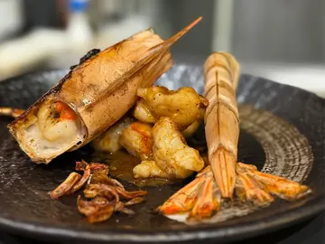 我哋一行6人叫咗3个鸟海山铁板餐(二人前)~个套餐包括有:是日精选刺身、沙律、活龙虾、活鲍鱼、鹅肝多士、牛肉薄烧、野菜、炒饭、味噌汤,个餐绝对够食,份量好足!不过我哋就贪心想试多啲嘢,额外加咗活赤贝刺身、白鳝同特大虎虾(真系有手臂咁长😳),条鳝超爽弹,厨师仲起咗块皮分开煎脆👍🏻;特大虎虾味鲜、肉弹,一只都够我哋6个人分😆至于套餐嘅嘢食大致上都有水准,唯独系个「鹅肝多士」表面太厚粉,一嚟口感唔好,二嚟粉味遮咗啲鹅肝味,扣咗啲分🥲-咁嘅价位又咁多嘢食真系好抵,不过环境上就冇啲贵价铁板烧餐厅咁靓同宽敞㗎啦,而且得Bar枱可以睇到铁板烧位置,座位数量唔多㗎!餐厅做到月中(1月14号)就结业啦,有兴趣嘅就快啲把握时间去食喇!😳…查看更多