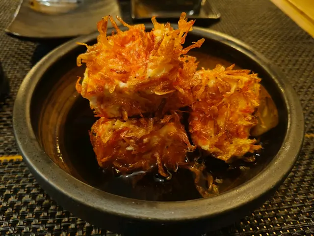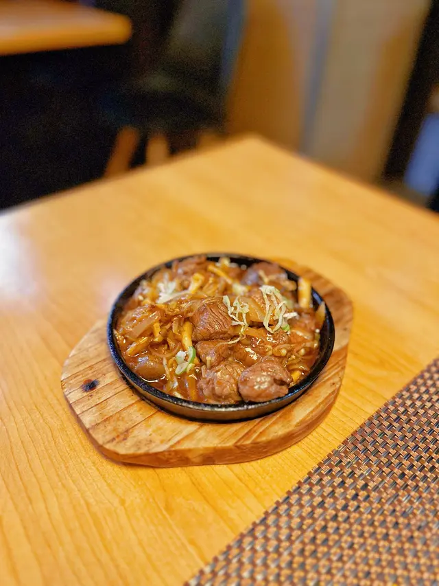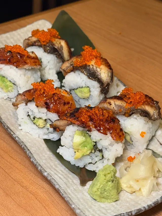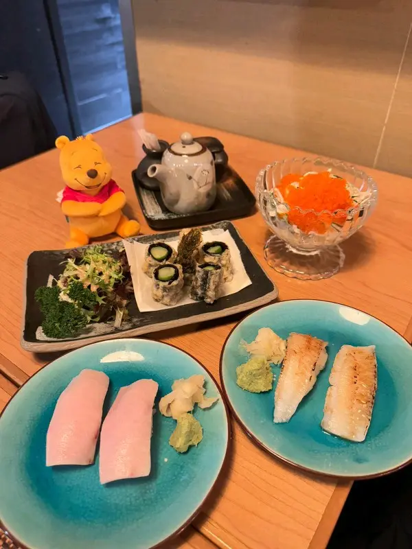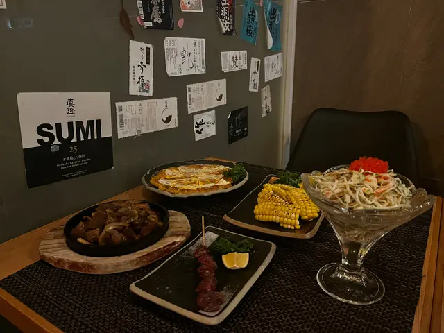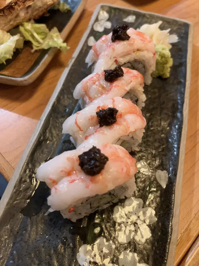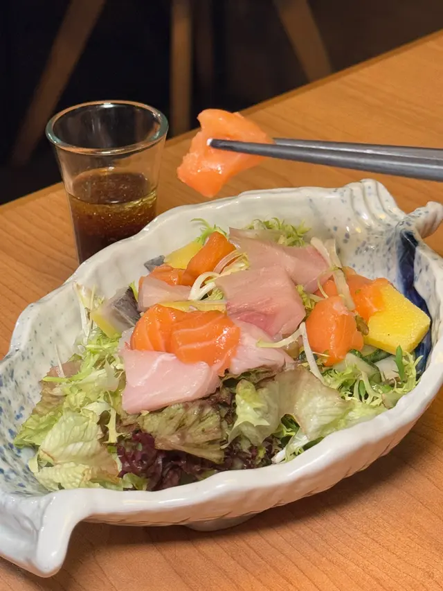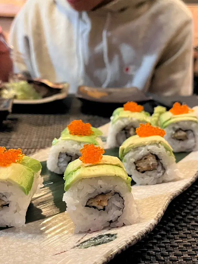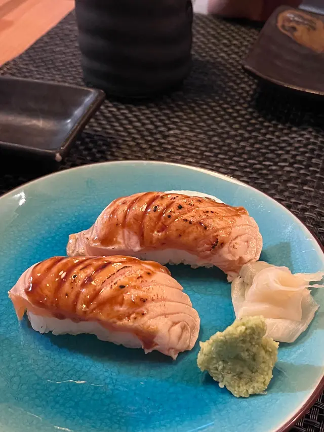 依間樓上日本餐廳坐得幾舒服,裝潢經典日系,木枱凳坐得舒服😌。侍應服務細心,會適時替我們執拾及加茶。蟹籽沙律沙律🥗夠凍幾好食😋。切成幼絲口感幾好。雞腎串及七味燒粟米🌽串燒幾惹味有咬勁。七味燒粟米去核,外面很少見,一粒粒口感過癮。木魚絲苦瓜玉子薄餅🍕遠睇係pizza但食落個「餅底」係蛋餅,又扮得幾似;個味調得幾香。配料苦瓜唔苦幾易入口有甘香餘韻。鐵板牛舌粒有驚喜!小食用鐵板上菜,炸炸聲熱烘烘,牛舌有很多汁好juicy,切到粒狀肉質好嫩滑。牛油果🥑軟殼蟹卷--軟殼蟹超脆身。…查看更多