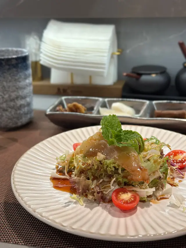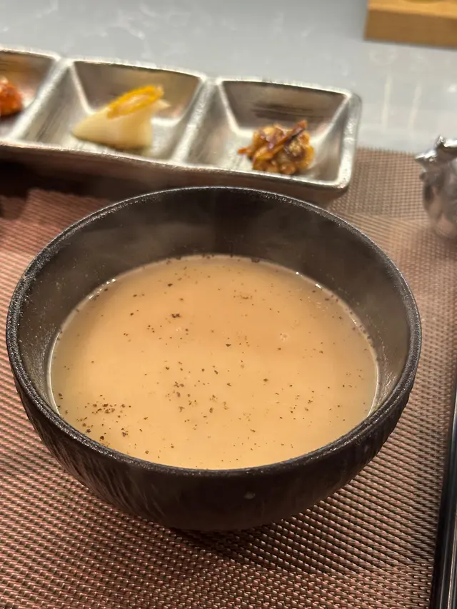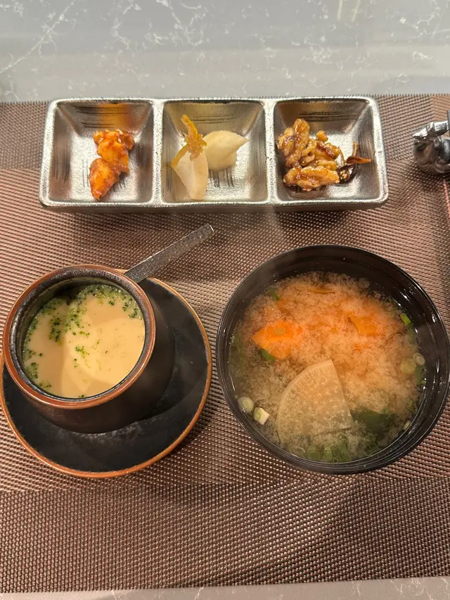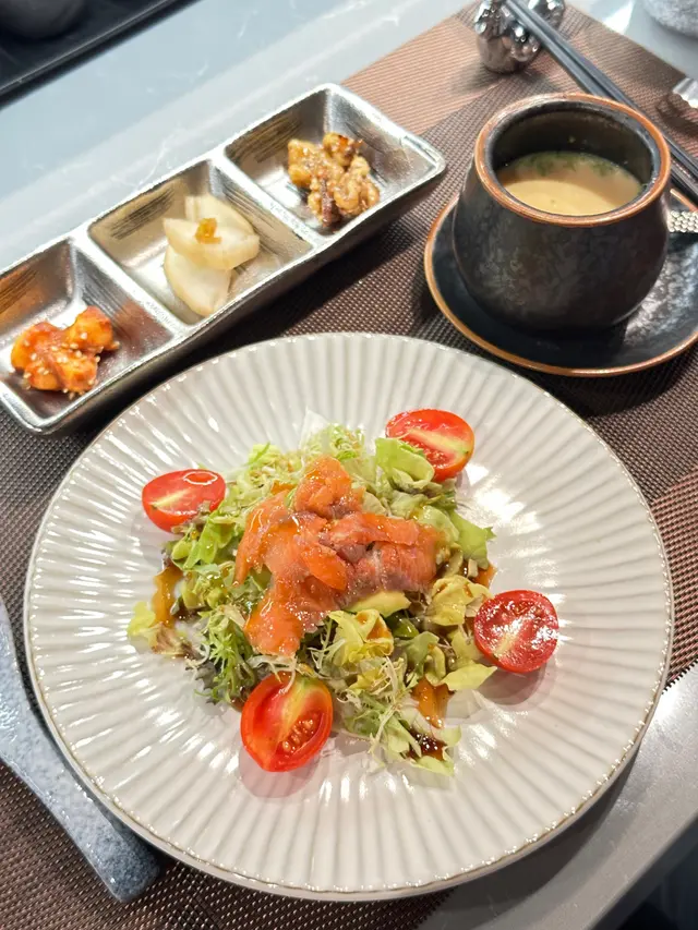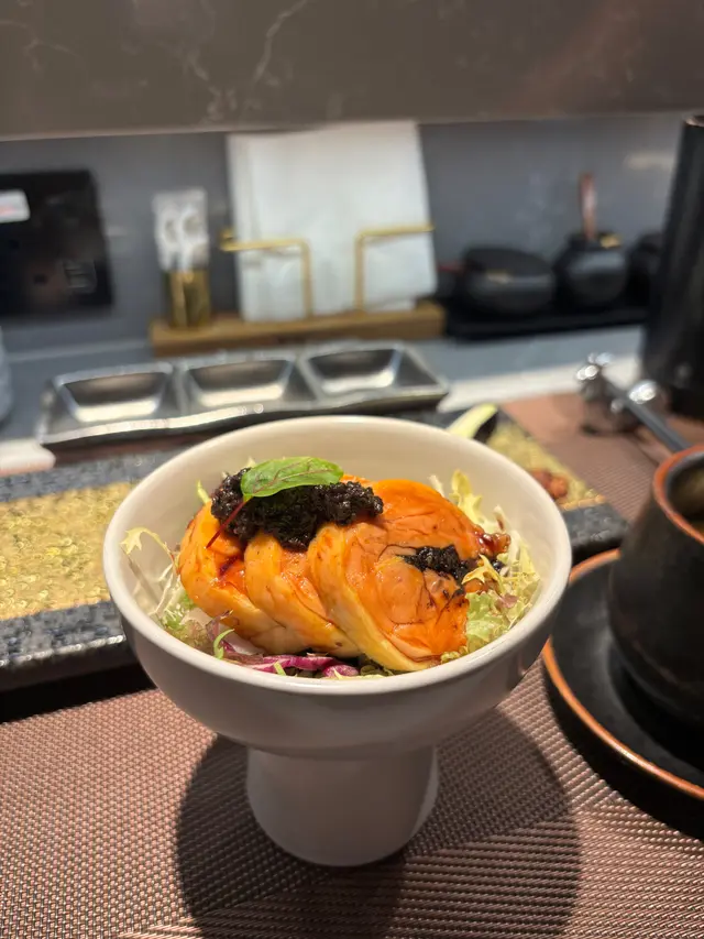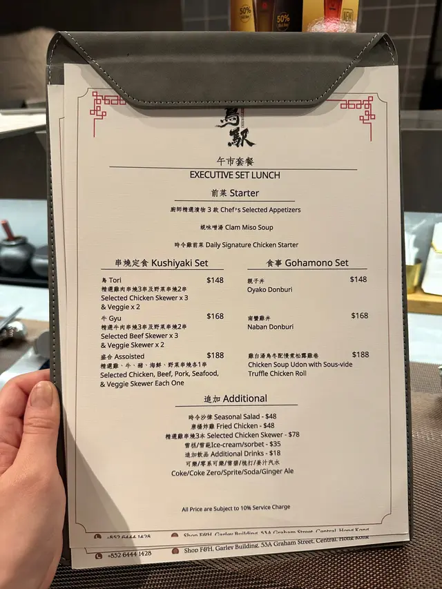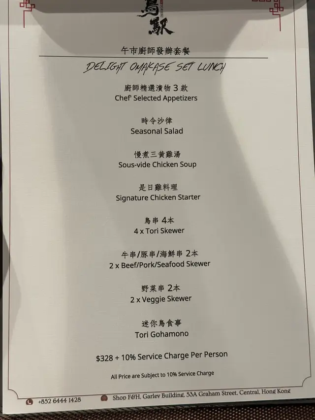 朋友極力推薦,今晚同老細兩個人去試新店~搭住中環登山電梯直上到頂,原來有間走高級路線嘅燒鳥店!裝修現代和風,最貼心係有locker放袋,可以輕鬆食飯唔使睇住啲隨身物品👏試咗新推出嘅「鳥の職人套餐」,二人分享啱啱好:🥢 前菜日本大根+水茄配秘製脆脆醬,芝麻、脆蒜、香蔥撈埋乾醬油,脆卜卜,鹹香開胃!🔥 稀有部位三連發雞心爽口彈牙、雞皮燒到脆卜卜、雞腳筋煙韌有嚼勁,每款都係驚喜!🌿 嚴選部位三重奏大蔥雞肉香甜多汁(連蔥都好味)、雞翼外脆內嫩(超正!)、雞柳柔軟入味(勁juicy),火候控制恰到好處~🍢 時令燒野菜小青椒清新爽脆、秋葵黏滑帶焦香,簡單鹽燒已經好正,仲有鰹魚絲,提香提味!🍲 全場MVP慢煮三黃雞白湯濃到黏嘴唇!忍唔住追加雞白湯稻庭烏冬,湯底醇厚烏冬滑溜,老細都默默飲清光😆👨🍳 廚師長特製燒鴨肝配新鮮草莓同藍莓,水果嘅清新完美平衡鴨肝嘅豐腴,邪惡得嚟唔膩口~🍚 完美收尾親子丼日本蛋漿包裹嫩滑雞肉,撈飯食超治愈!甜品豆腐雪糕+抹茶凍餅冰涼清爽。今次二人飯局非常satisfied,老細食得好滿意,稀有部位特別得嚟又夠矜貴~帶埋張單一個月內仲送一杯mojito,係值得encore嘅好地方!…查看更多