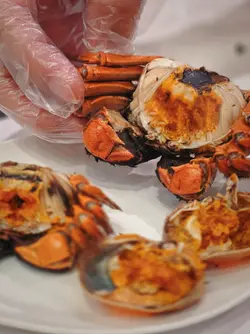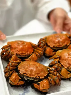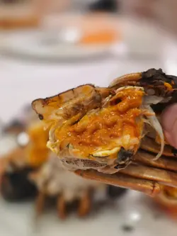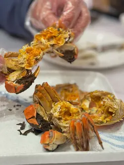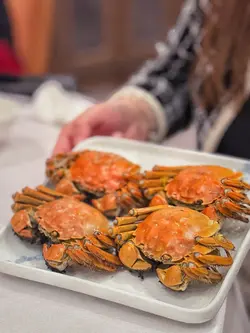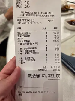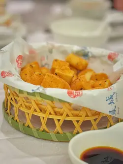 位于上环的老字号酒家。不知不觉蟹季又快要结束了,今年实在太忙;除了酱油蟹之外,这个大闸蟹季节竟然还未尝过蟹肉,总觉得心里空空的。有见及此,便决定与朋友抓住大闸蟹的尾巴,赶上这顿人均二百多元的抵食蟹宴。⋆_____4人大闸蟹宴______⋆❅ 时令大闸蟹❅ 太史五蛇羹❅ 一口金砖豆腐❅ 鱼汤杞子浸豆苗❅ 秘制羊腩煲❅ 脆皮炸子鸡 (半只)❅ 驱寒姜茶.另加:❅ 虾多士❅ 生菜片鹌鹑松..话明蟹宴,当然先讲大闸蟹。大闸蟹虽不算大只,但肉质细嫩鲜甜,蟹膏金黄饱满,蟹味纯正,入口便是秋天的鲜美,果然当造时节的蟹就是好吃。其后的蛇羹浓郁顺滑,配料均匀融入汤底,香气带著淡淡药膳气息,口感温润厚实。羊腩煲则是秋冬必食之一,但其实本人不食羊,朋友说汤汁浓郁不腻、香气突出,热气腾腾的锅物自然就暖胃又暖心。金砖豆腐、鱼汤杞子浸豆苗及炸子鸡味道都不错,特别喜欢那一口大小的金砖豆腐,外层香酥可口,内里满是豆香,咬下去香气四溢,配啤酒堪称完美。.当天的朋友全是大胃王,于是决定多加两道店员推介的餐厅名物: 虾多士及生菜片鹌鹑松。鹌鹑松颇有惊喜,肉粒炒得香气四溢、质感细腻,搭配爽脆生菜叶包裹食用,清新不腻,咸香之间层次丰富。最后饭后以一杯浓香姜茶作结,姜味浓郁但不呛喉;若可以加上一粒汤丸,想必更完美。…查看更多