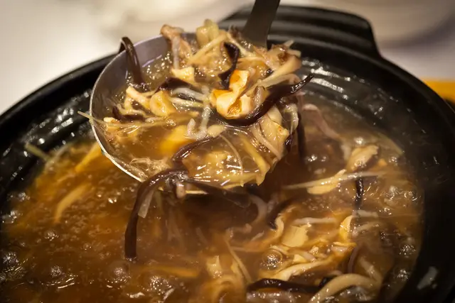 位於上環的老字號酒家。不知不覺蟹季又快要結束了,今年實在太忙;除了醬油蟹之外,這個大閘蟹季節竟然還未嘗過蟹肉,總覺得心裡空空的。有見及此,便決定與朋友抓住大閘蟹的尾巴,趕上這頓人均二百多元的抵食蟹宴。⋆_____4人大閘蟹宴______⋆❅ 時令大閘蟹❅ 太史五蛇羹❅ 一口金磚豆腐❅ 魚湯杞子浸豆苗❅ 秘制羊腩煲❅ 脆皮炸子雞 (半隻)❅ 驅寒薑茶.另加:❅ 蝦多士❅ 生菜片鵪鶉鬆..話明蟹宴,當然先講大閘蟹。大閘蟹雖不算大隻,但肉質細嫩鮮甜,蟹膏金黃飽滿,蟹味純正,入口便是秋天的鮮美,果然當造時節的蟹就是好吃。其後的蛇羹濃郁順滑,配料均勻融入湯底,香氣帶著淡淡藥膳氣息,口感溫潤厚實。羊腩煲則是秋冬必食之一,但其實本人不食羊,朋友說湯汁濃郁不膩、香氣突出,熱氣騰騰的鍋物自然就暖胃又暖心。金磚豆腐、魚湯杞子浸豆苗及炸子雞味道都不錯,特別喜歡那一口大小的金磚豆腐,外層香酥可口,內裡滿是豆香,咬下去香氣四溢,配啤酒堪稱完美。.當天的朋友全是大胃王,於是決定多加兩道店員推介的餐廳名物: 蝦多士及生菜片鵪鶉鬆。鵪鶉鬆頗有驚喜,肉粒炒得香氣四溢、質感細膩,搭配爽脆生菜葉包裹食用,清新不膩,鹹香之間層次豐富。最後飯後以一杯濃香薑茶作結,薑味濃郁但不嗆喉;若可以加上一粒湯丸,想必更完美。…查看更多