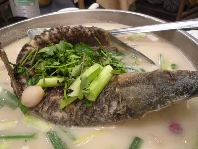 昨天去此處跟客人吃飯,就是因為人客喜歡吃魚,特別是河鮮是他們的最愛,所以就要投其所好,知道將軍澳有此一家專吃淡水魚的順德菜酒家,就慕名而來。一進去反而奇怪的是很多人客在吃火鍋為主,還以為是找錯了地址。原來也有吃小菜的,不過我們還是第一枱吃小菜的。看菜牌,有一道菜很特別的,叫做檯面活鮮生魚魭魚(半條)送時菜一份賣118元,最過癮的是寫住”最大缺點是沒有泥土味道“那不是優點嗎?又是marketing招數!上菜是用瓦斯爐連同一個大盤盛住半條魚,魚湯全是白色的,非常吸引胃口,我們聽經理推薦加20元加米線來吃。魚湯很重胡木叔味道,還是有點味精,不是很舒服;魚本身不錯,起碼很大條,雖然是淡水魚的毛病是超級多骨頭,要很小心吃才可以。最後以米線來伴魚湯來吃,相當不錯的組合。此外也有點98元的黑草羊腩煲,缺點是羊腩很小,不太實惠,但是論味道算是不錯的,起碼我們吃得開心。看見旁邊的人客在吃火鍋,真想下次也試試其任食火鍋,價錢不貴,自己去街市買可能還貴!查看更多